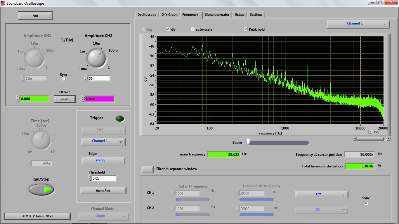 Результат получился интересный (на мой взгляд). Поэтому, я продублировал измерения при другом масштабе шкалы.poty писал(а):Чтобы снять многие вопросы, я бы также запитал Piccolo от аккумулятора и подключил его тупо к ноутбуку, работающему от батарей. Здесь мы вообще всё от земли розетки отрываем!
