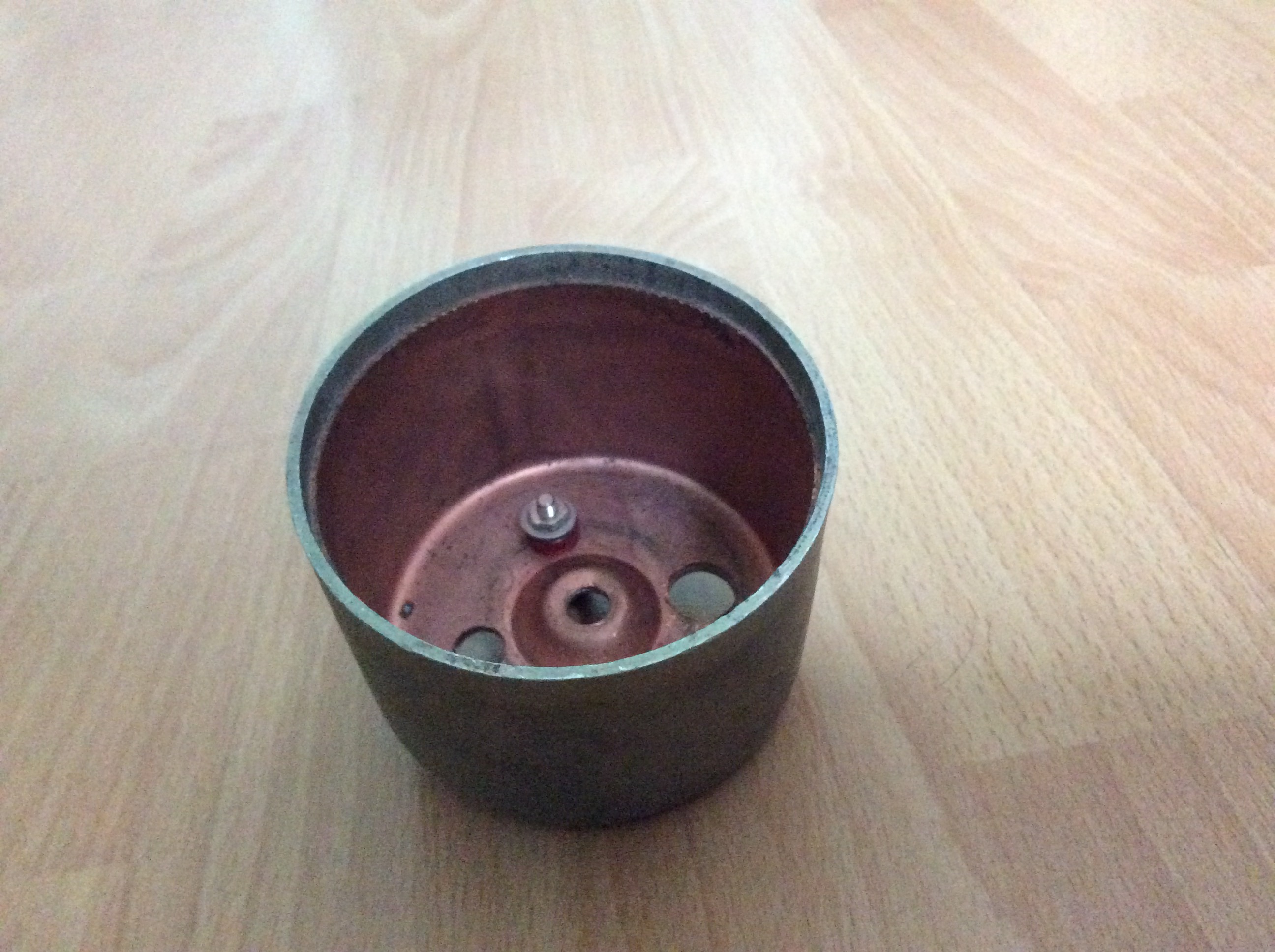 Вот фото пермалоевого стакана из военки ( крышка есть, плотно и без щелей с напуском закрывает его), а внутри виден медный вкладыш. Отверстия боковые я наковырял, центральное было. В нем первоначально у меня стояли МС трансы. Сейчас я их, глядя на Андрея К., тоже перенёс в корректор ( слева два черных боченка около торцевой стенки).