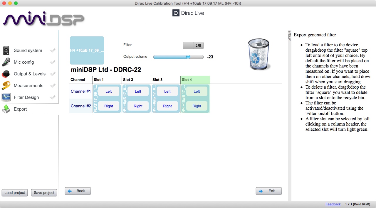 P.S. Прямо посреди эксперимента, при загрузке фильтра с коррекцией по REW, программа miniDSP закрылась.