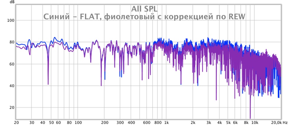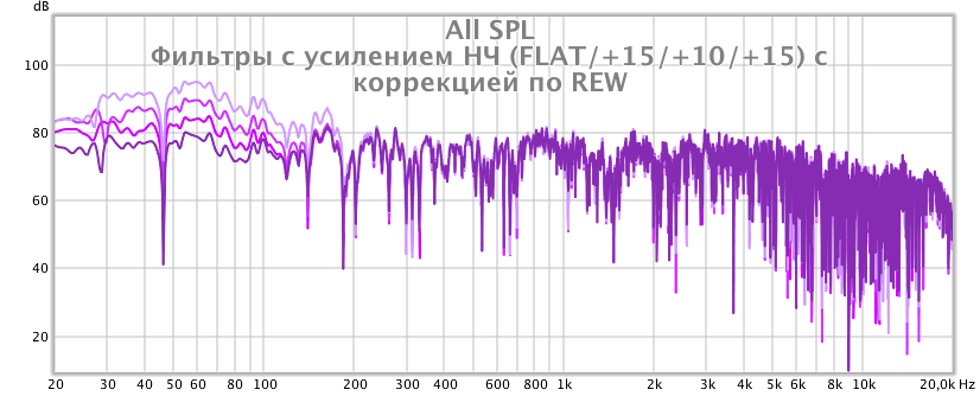 В третьих, теперь я сначала максимально выравниваю "FLAT" по измерениям в REW (сигнал через этот фильтр), и уже из его кривой строю остальные фильтры.