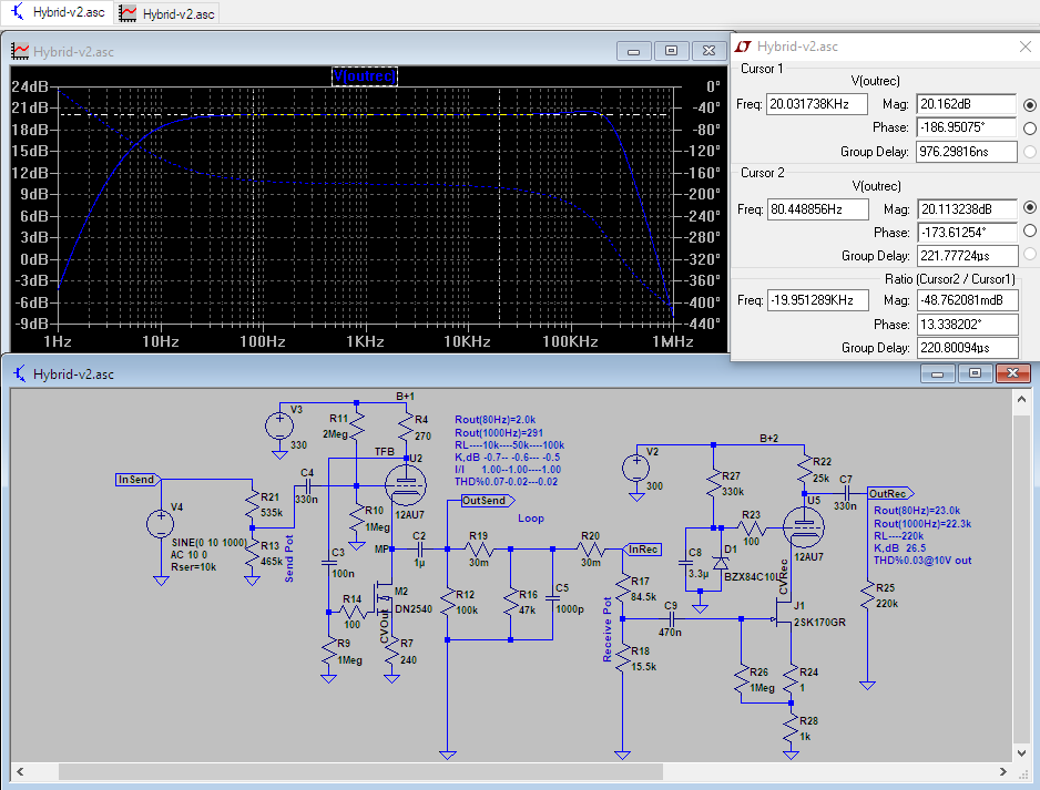 Нормальная петля на двух баллонах с триодами будет выглядеть как-то так: Идея, думаю, понятна. Номиналы на глаз, нужно уточнять. Если нужно, чтобы вход мог работать с проф. +4dBu, то придется ставить 12at7 или что-то подобное. Более того, если нужны только +4dBu, то второй каскад в общем-то не нужен.