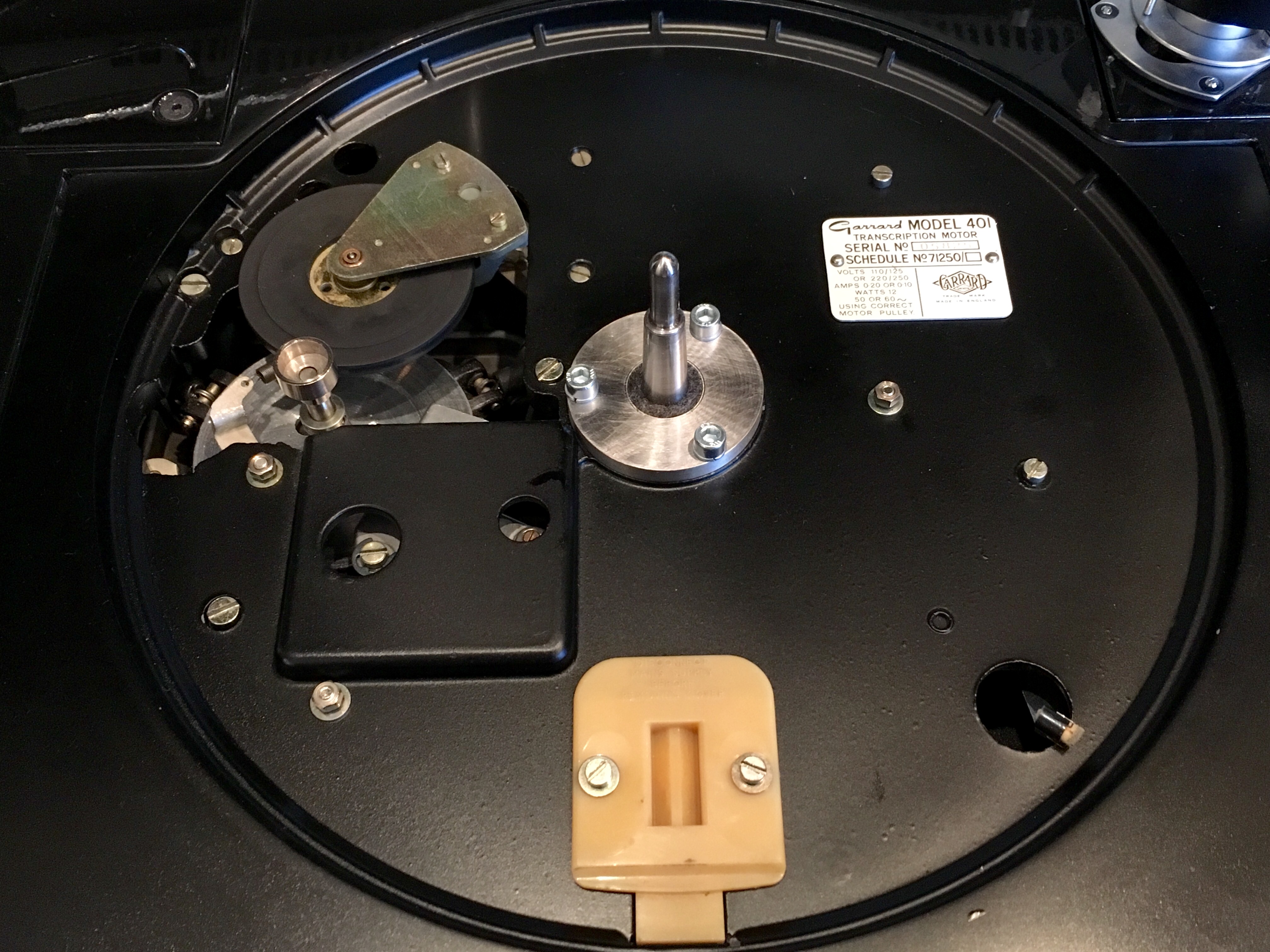 Шпиндель установил легко. Крепежная шайба - это стоящее ноу-хау. Я такого не встречал, но это существенно облегчает задачу. Буквально на раз-два. Винты выбрал те, что дал мне Ян. На мой взгляд они хорошо вписались в ландшавт, при этом очень крепко притянули корпус шпинделя к панели проигрывателя. Получилось очень жестко. Ни малейших шансов прогибам в этом месте.