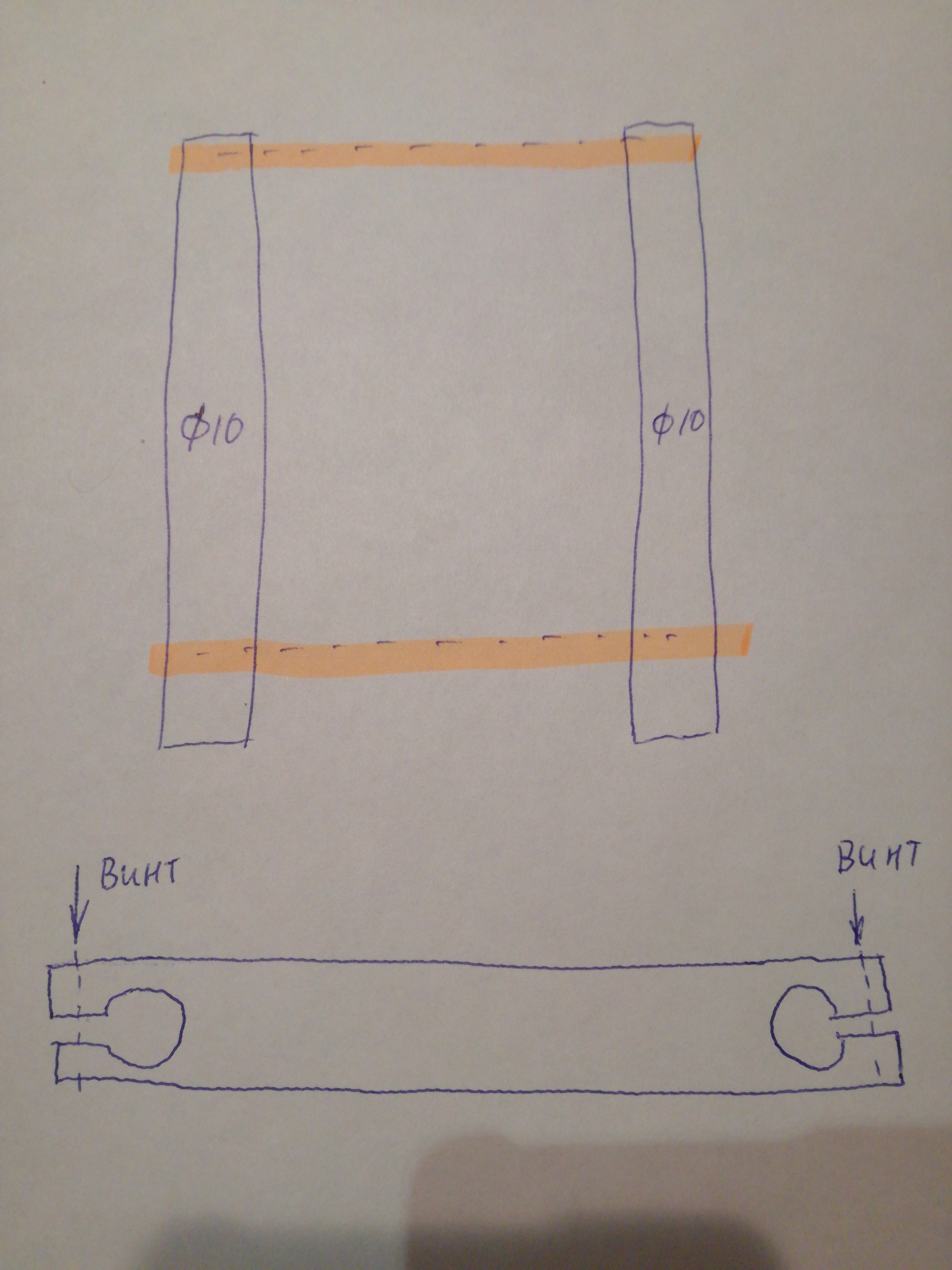Итак, что я хочу сделать две перекладины - сверху и снизу(1. 2). Чтобы быть уверенным в том, что у меня направляющие параллельны друг другу и для придания дополнительной жесткости конструкции. На каком расстоянии друг от друга будут направляющие - я уточню, пока 100 мм
