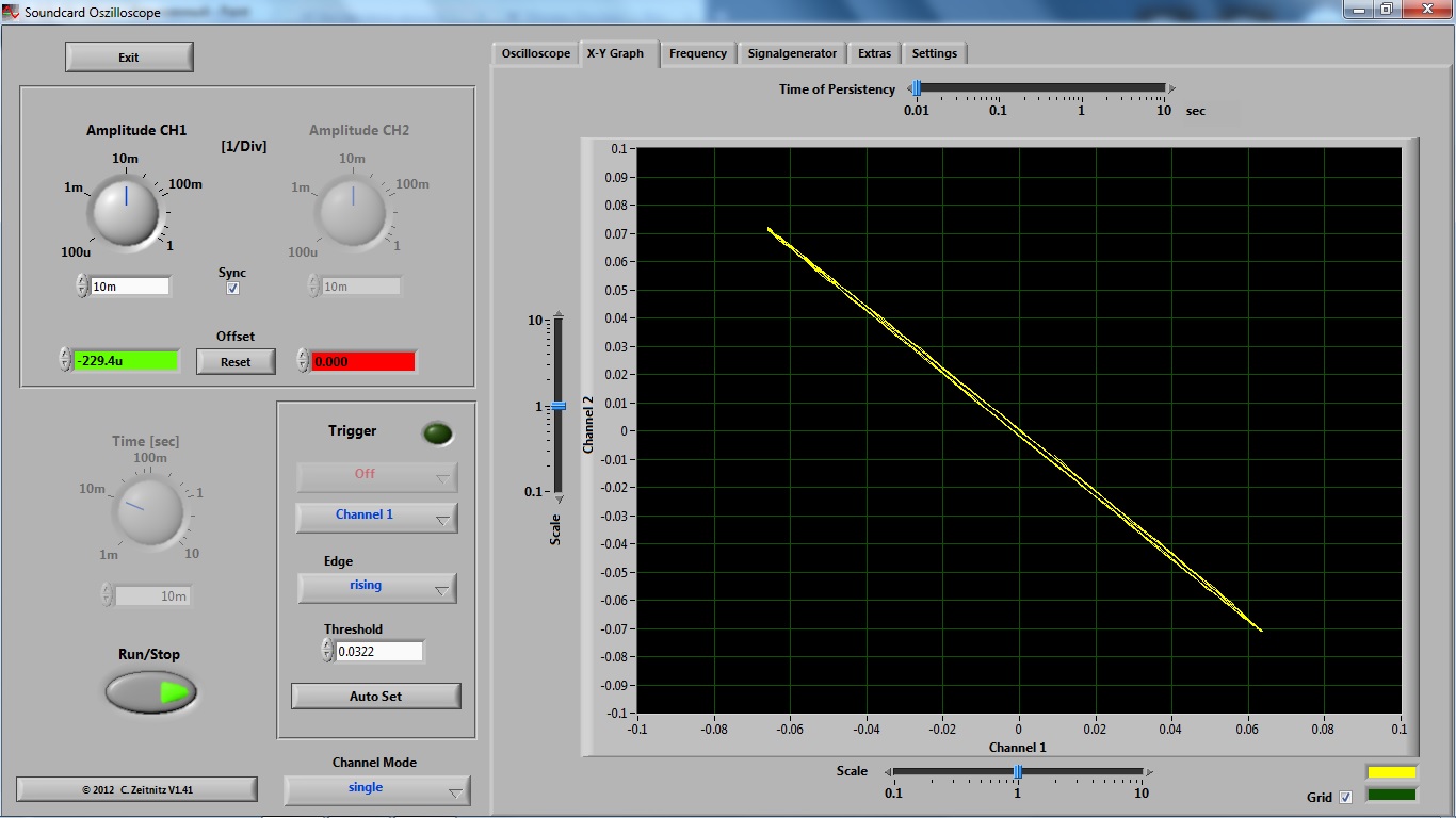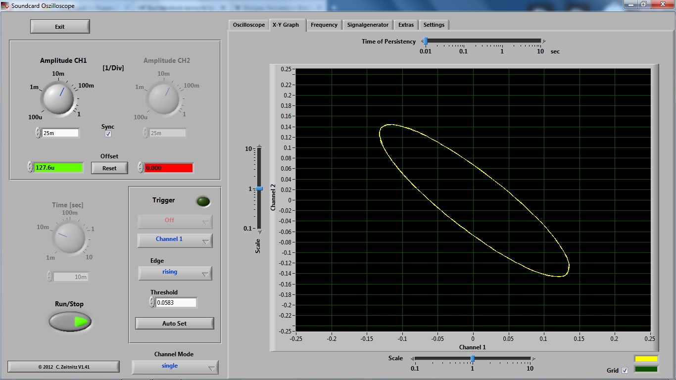 Я использовал тот же трек, что и вчера. С пластинки "Hi-Fi news" (первая сторона, №6). Но теперь, исключено искажение фазы румкорректором - я подключился непосредственно к хэдампу. И мне удалось выровнять амплитуды каналов. Именно, визуально оценивая это.