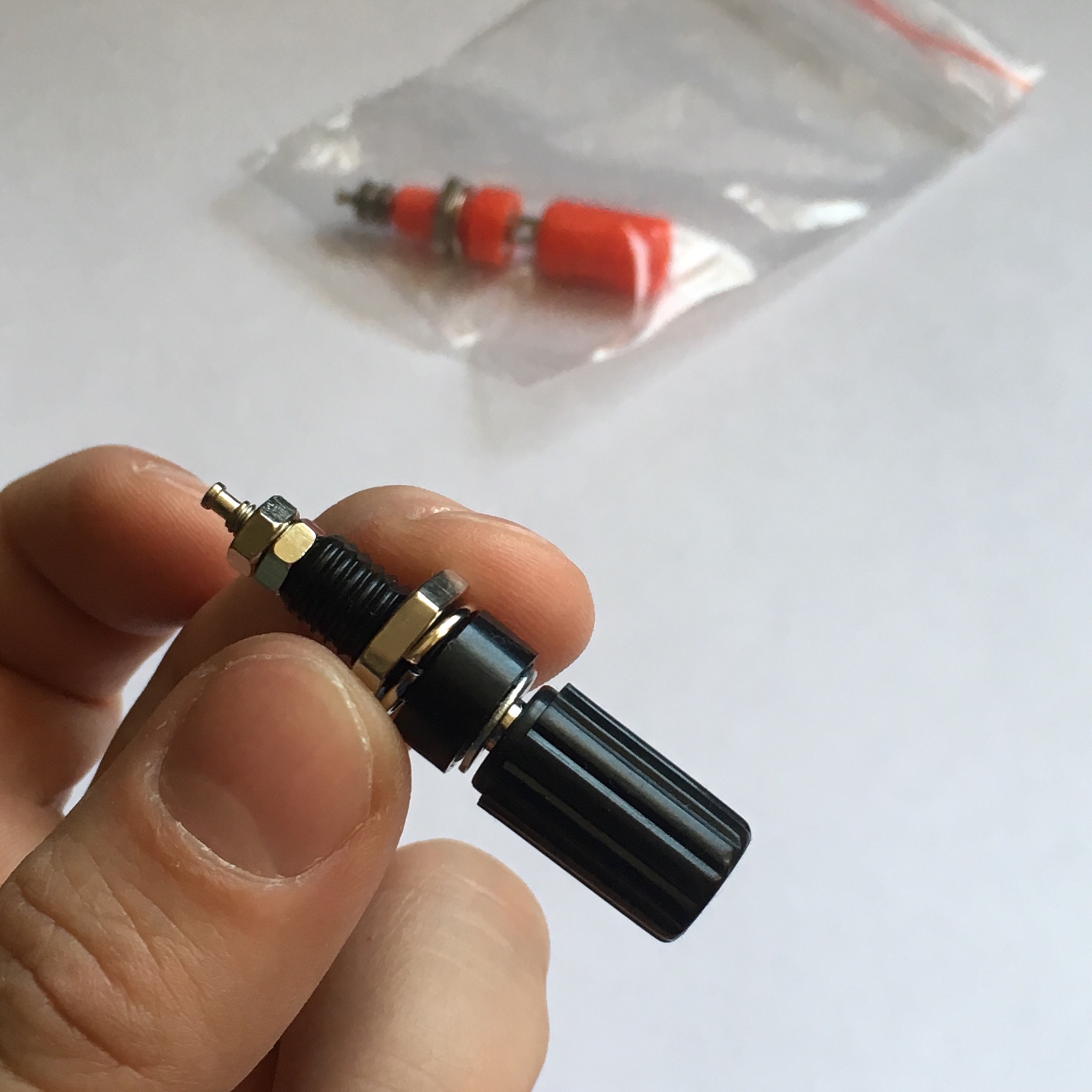 "Терминал", который я предполагаю разломать для уменьшения размера, пока не приехал. Но, вчера пришел другой терминал (купленный на пробу), самый миниатюрный из акустических, что я смог найти под вилку 4мм.