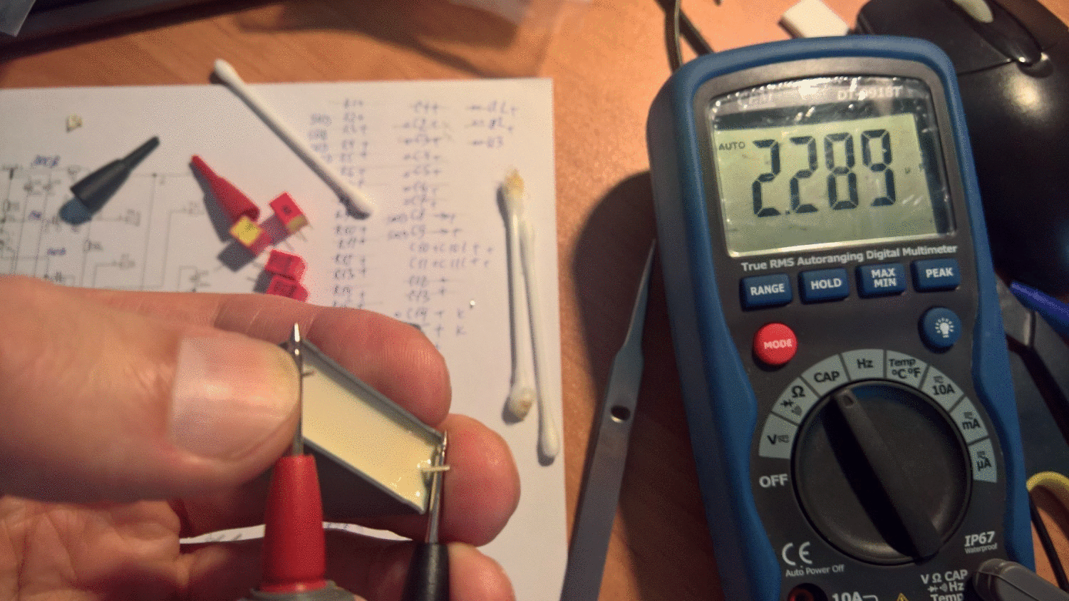 Несмотря на кажущуюся заполненность, 4 конденсатора RIAA (10нФ WIMA) я так и не нашёл. Вместо них просто установлены в таком же корпусе, но 3,3нФ. Ближайшие, что есть у меня - 22нФ или 15+3,3=18,3нФ. Есть WIMA 10нФ, но на 630В - корпус толще, выводы ближе и короткие - не встают...