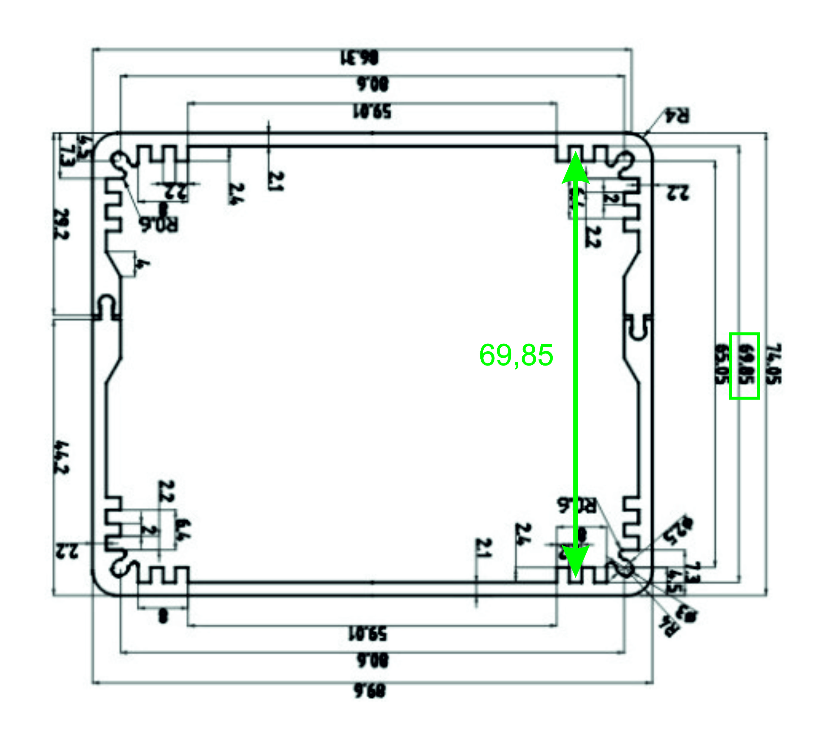 1) Плата 60х175. Ширина в пазах корпуса из профиля 69,85 (мои расчеты). Как я понял, мы можем увеличить ширину или сделать установочные ушки?