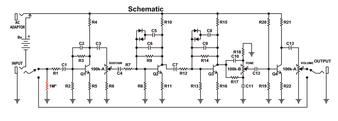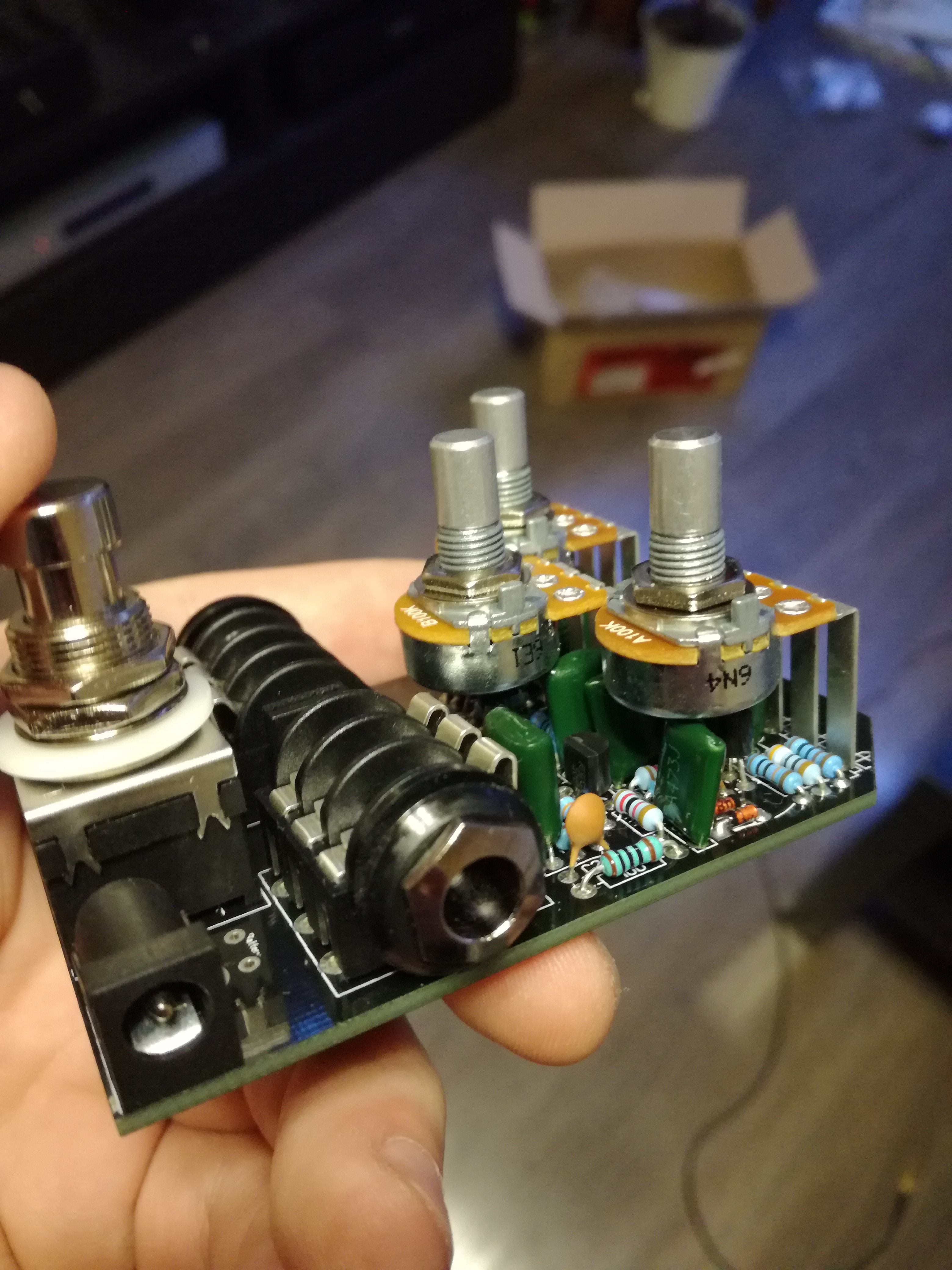 В оригинале педаль была собрана в очень большом корпусе, спустя несколько версий переехала в такой Размеры 119x94x34mm.