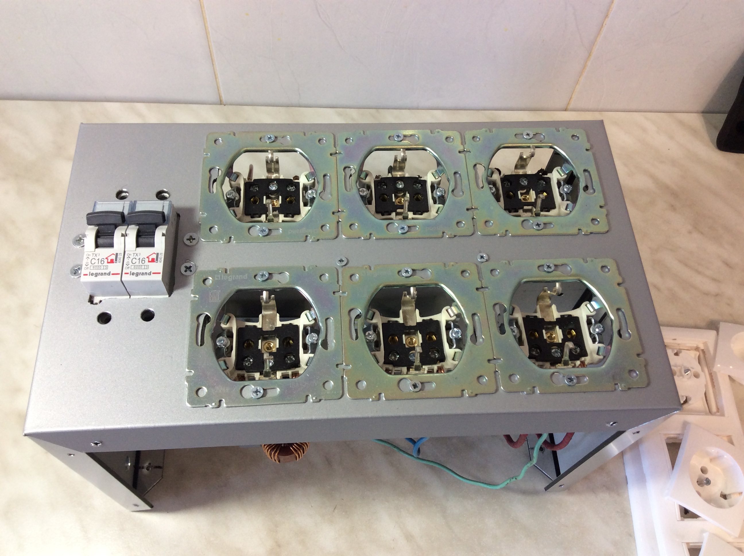 При проектировании корпуса не осознал прописной истины: в глубину по барабану размер фильтра, все равно на полу стоит! Критичным размером для меня является только ширина ( выгадывал миллиметры), поэтому аппетит приходит во время еды. Надо было на 8 розеток делать. Даже без фильтра пустая розетка по любому лучше, чем её отсутствие. Фильтром, при необходимости, можно по ходу эксплуатации до укомплектовать.