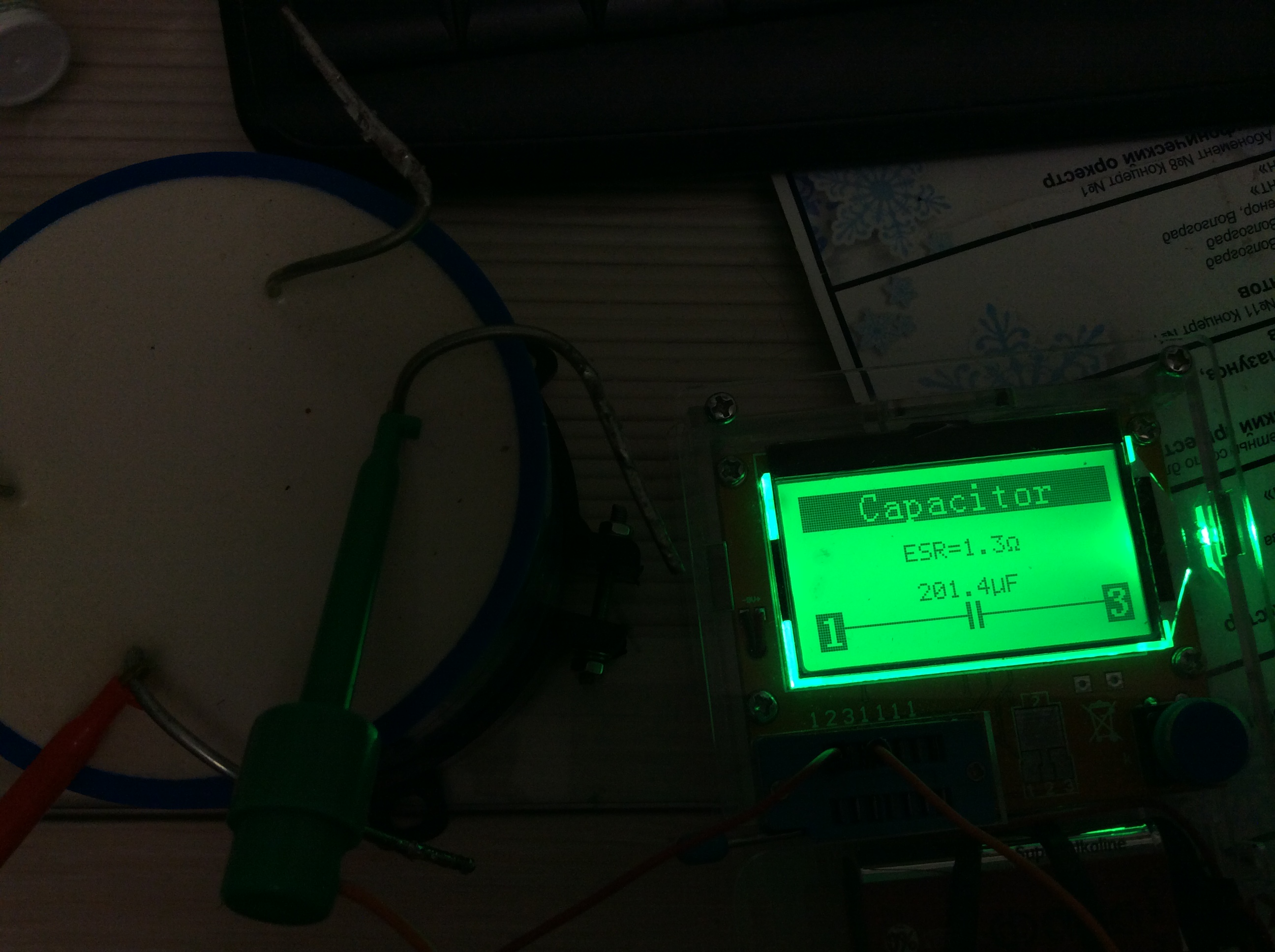 Замкнул концы выводов между собой, на конденсаторе 4-х выводном 200 мкф. ESR=2.0 ОМ