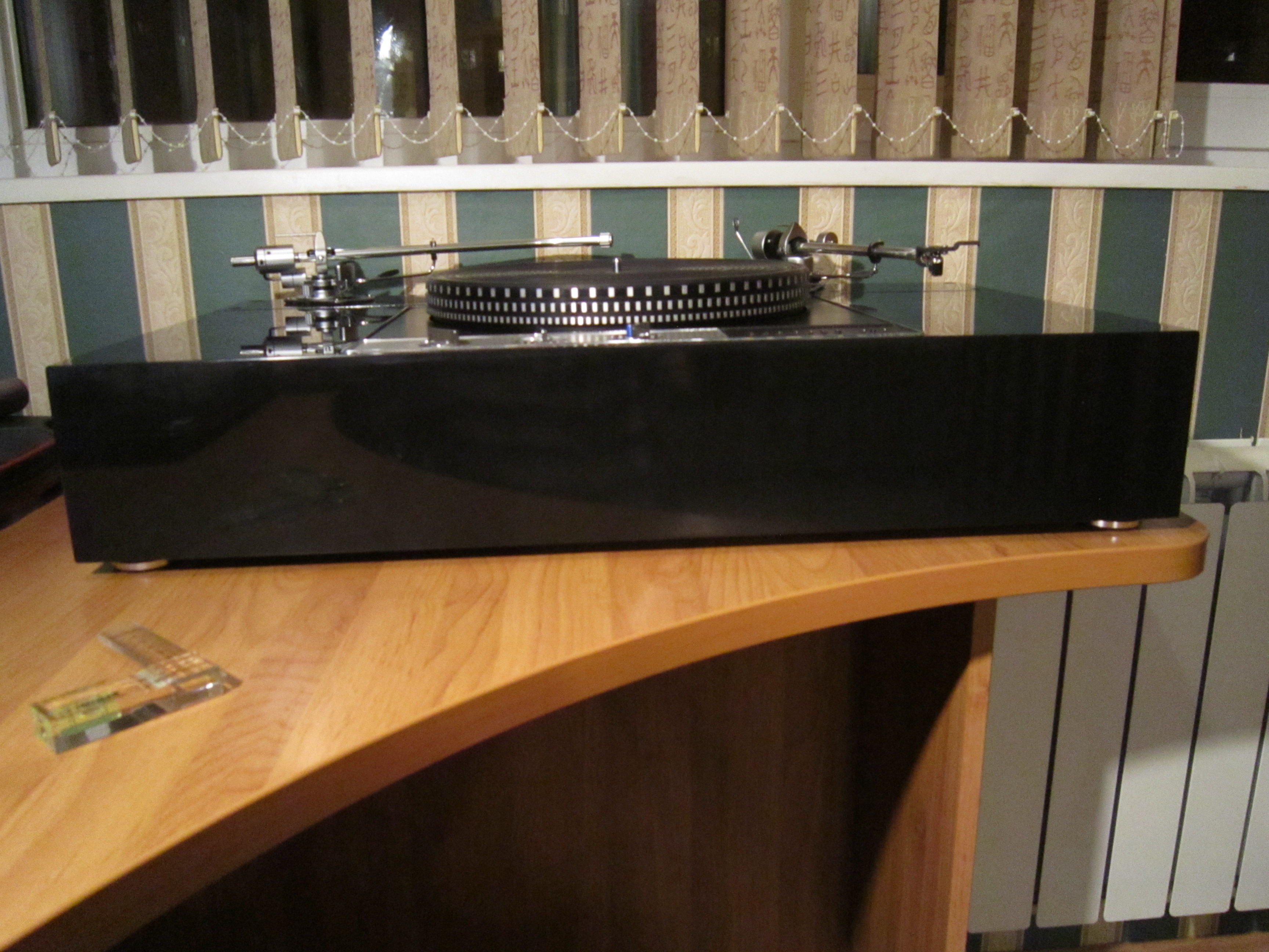 Долго выравнивал проигрыватель. По истине, клэмп с уровнем (за которым я не успел съездить к Яну) - серьезное облегчение этой процедуры. С тонармом и головкой долго не мучался. Сделал примерные настройки. Пока без загонов. К тому же, головка на шелле уже была.