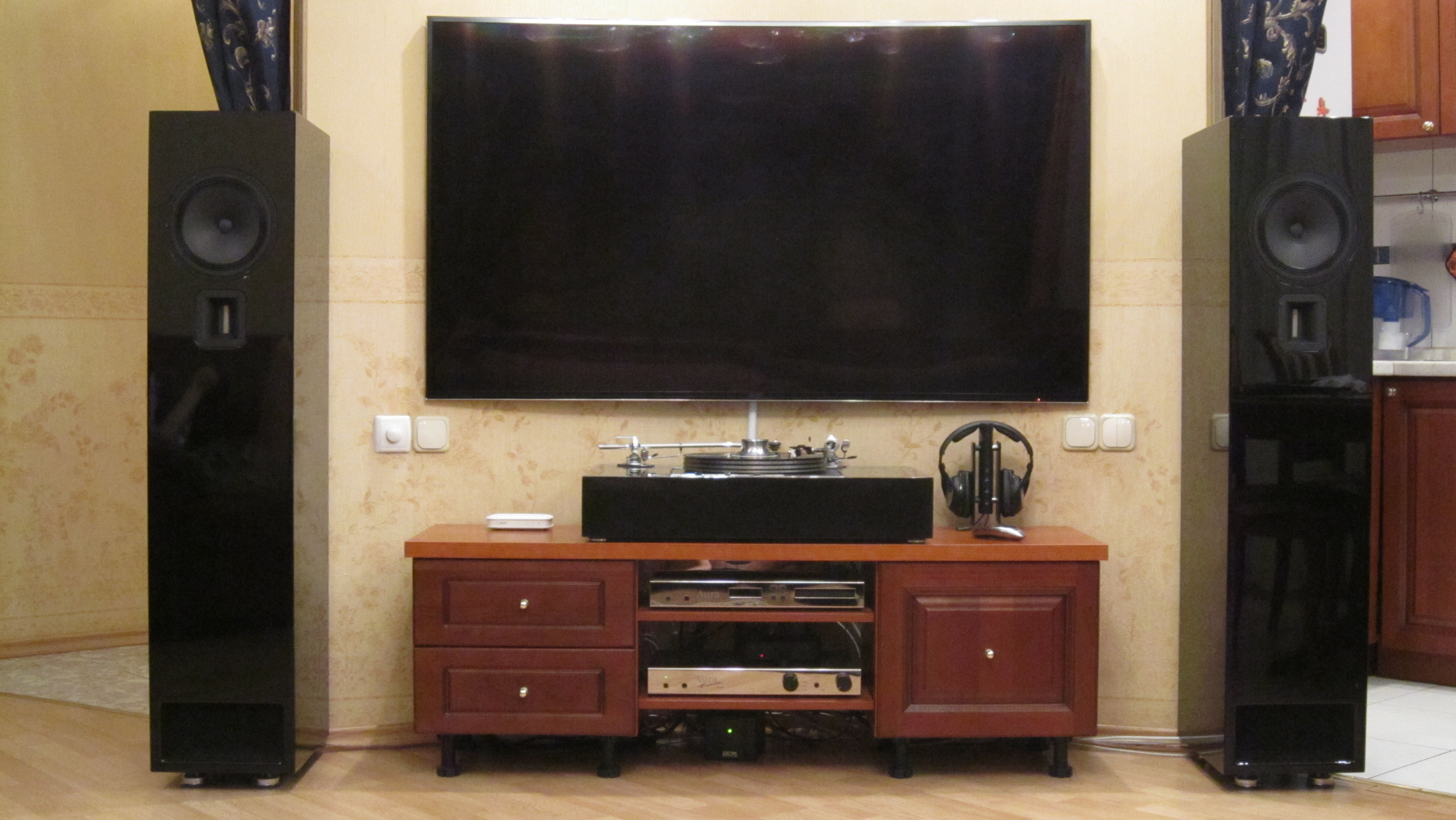 ...хотя подключено через встроенный фонокорректор AURA, самым дешевым и простым кабелем... Ну, нет пока другого у меня. :sad: