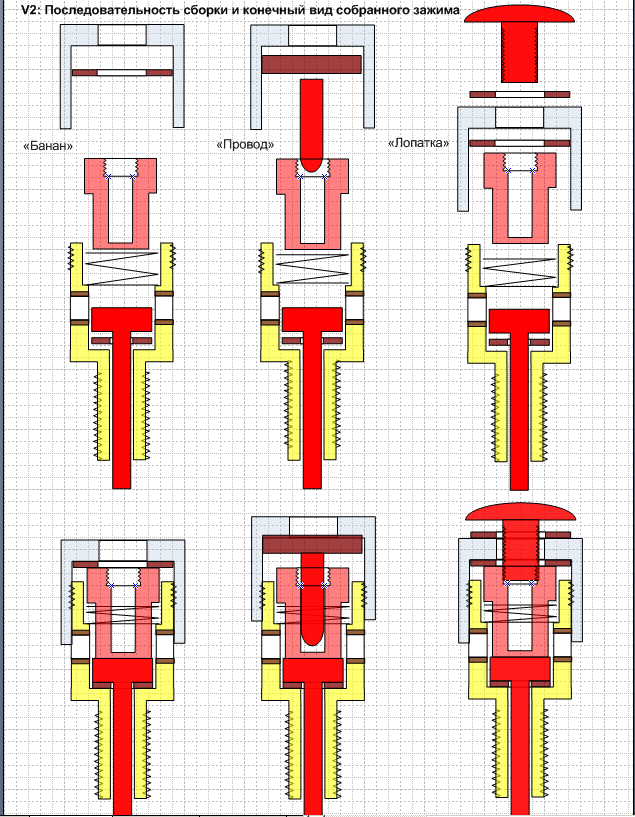 Не могу сейчас придумать, чтоб "банан" входил в тело второго поршня, а лопатка прижималась именно к изолированному "гвоздику"-токосъемнику без касания с основным корпусом и крышкой.