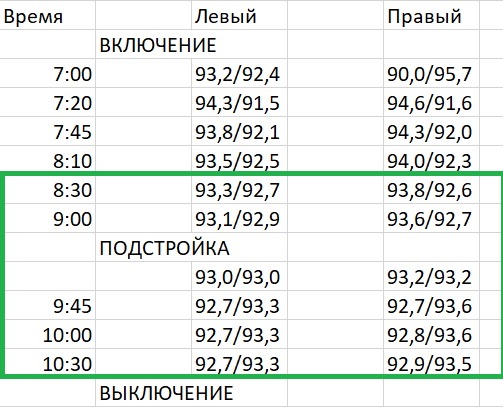 Сегодня "взял работу на дом" и параллельно провожу измерения. Теперь попробовал сделать балансировку спустя час после включения. Посмотрим, как она поведет себя дальше.