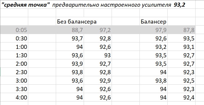 Перед выключением решил подправить баланс. Измерил 93,6/93,0.