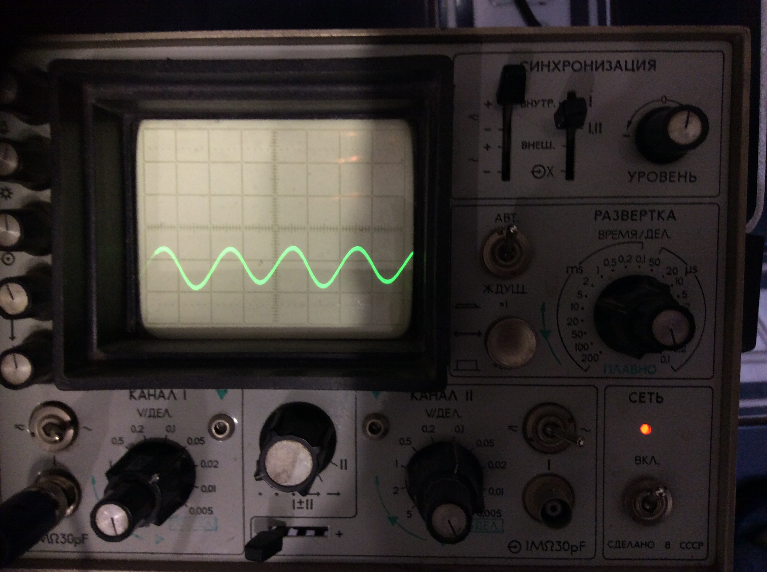 Синусоида, по мере прогрева от включений, начала немного уменьшаться, до 50 мВ.