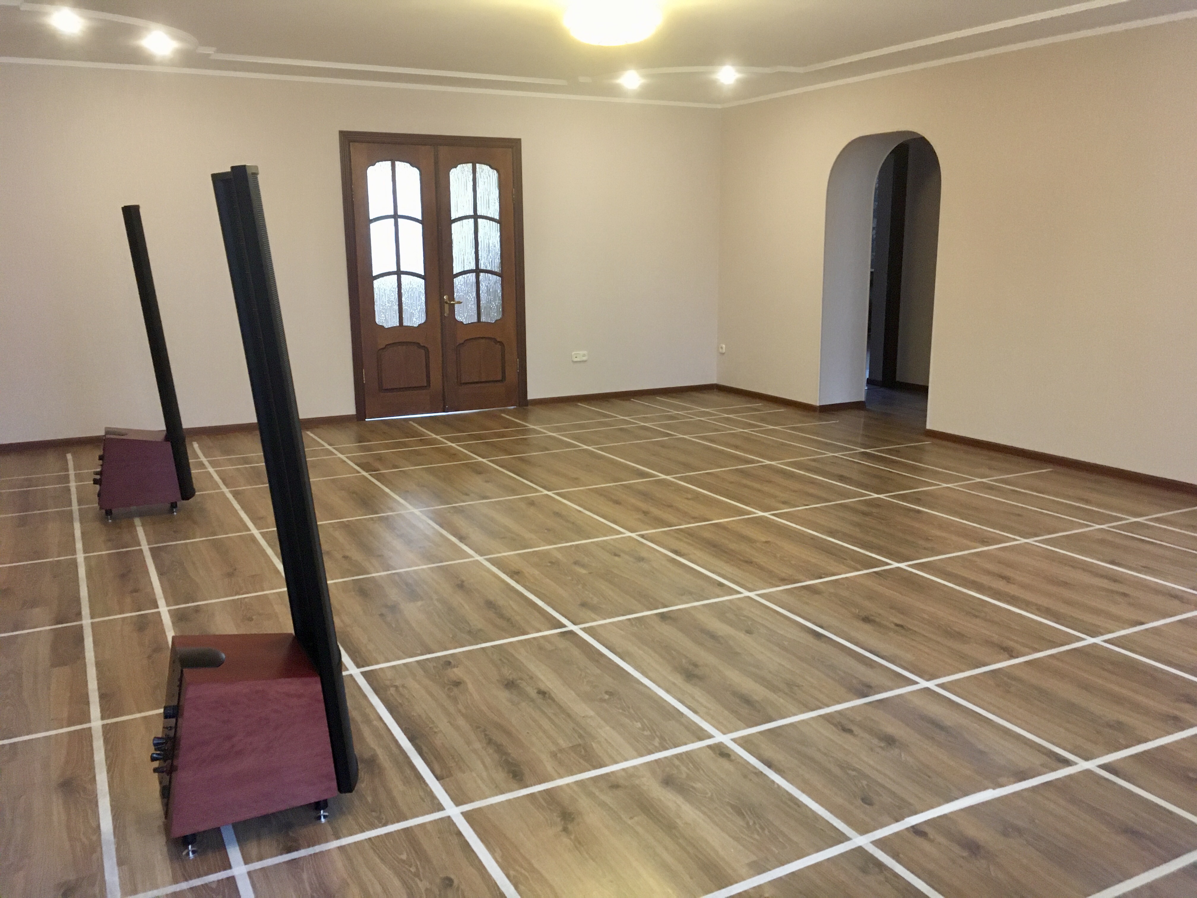 Расчертил по полу расчетные моды, перетащил Martin Logan.