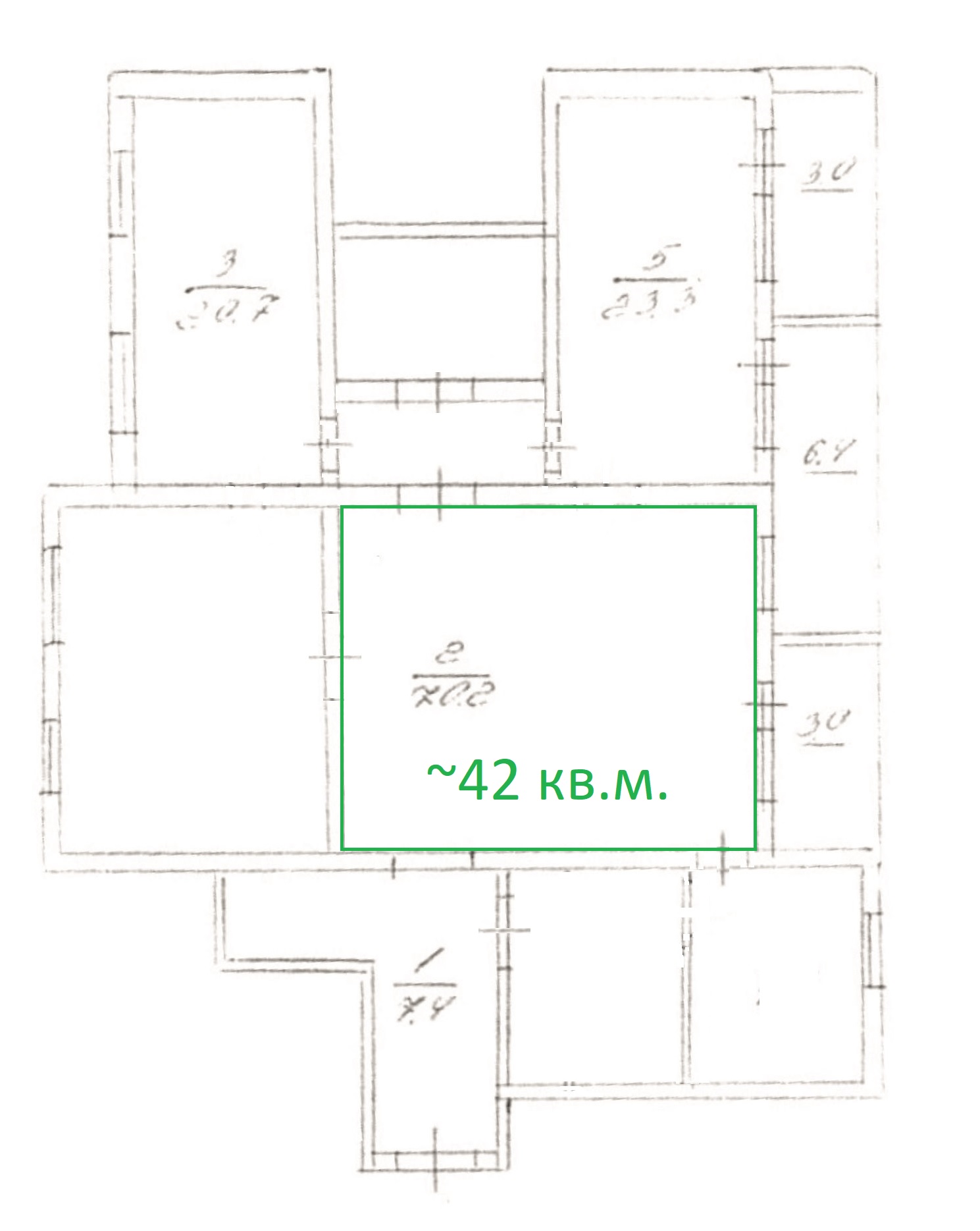 Стены комнаты капитальные. Кроме одной, на плане слева, она в полкирпича и отделяет гостиную от кухни/столовой.