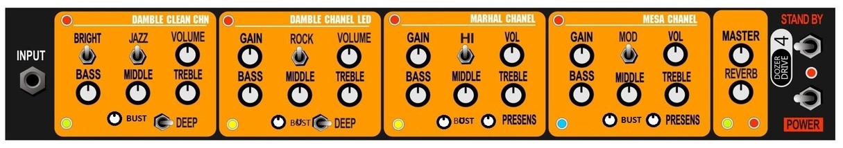 Еще изменения претерпел чистый канал - осталась только ручка гейн, громкость заменил делитель 220к/10к с конденсатором 560пф в верхнем плече - подбор производился на слух и в таком виде звук сногсшибателен.