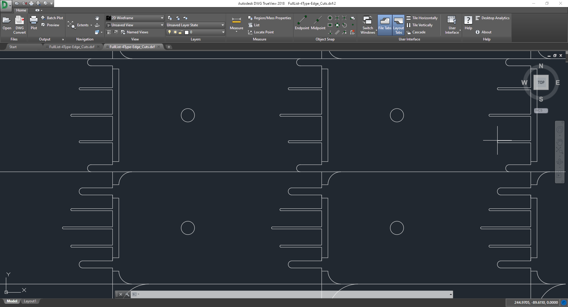 Эта линия исключает "заход", т.е., лазер просто прорезает всю ширину листа, не останавливаясь на каждом элементе (их 12 шт. по длине, а всего - 72 шт.). Остальные линии прорезаются при проработке вертикальных элементов.