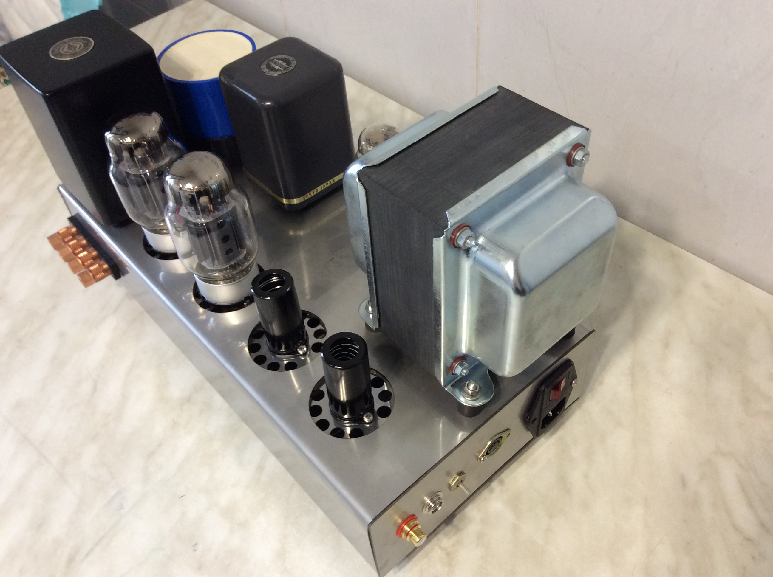 Пока первые результаты дизайна. Если не писать роман "Война и мир", коротко, то все пришлось делать самому, полировка не состоялась ( интернет магазин "220 Вольт" пообещали выполнить заказ по комплектации для полировки до 22 декабря, потом перезвонили-31 декабря. Это заказ с начала месяца!!!). В общем плюнул на полировку, собрал как получилось. Гнул по корпусу сам, все отказали в лучшем случае, в худшем динамили по срокам и возвращали. Надписями на задней пластине буду заниматься после НГ, когда отполирую заднюю и переднюю пластины. Внутри пусто, собрал для испытания платы. Категорически не хотел дважды перепаивать выходной трансформатор. Поэтому случился тормоз в работе, завязанный на сборке вчистую. На днях буду подключать к плате, с фальшпанелью с цоколями ламп на " улице" и от этого корпуса будет браться только анодка. Когда все собрал, увидел- крышки силового трансформатора диссонируют с корпусом. Но если бы я пошёл по стопам Романа в этом вопросе, боюсь я бы пропал с форума на пару лет. Мне бы по аналогии с мыслью об изготовлении собственного листогиба, пришлось бы осваивать производство гальваники!