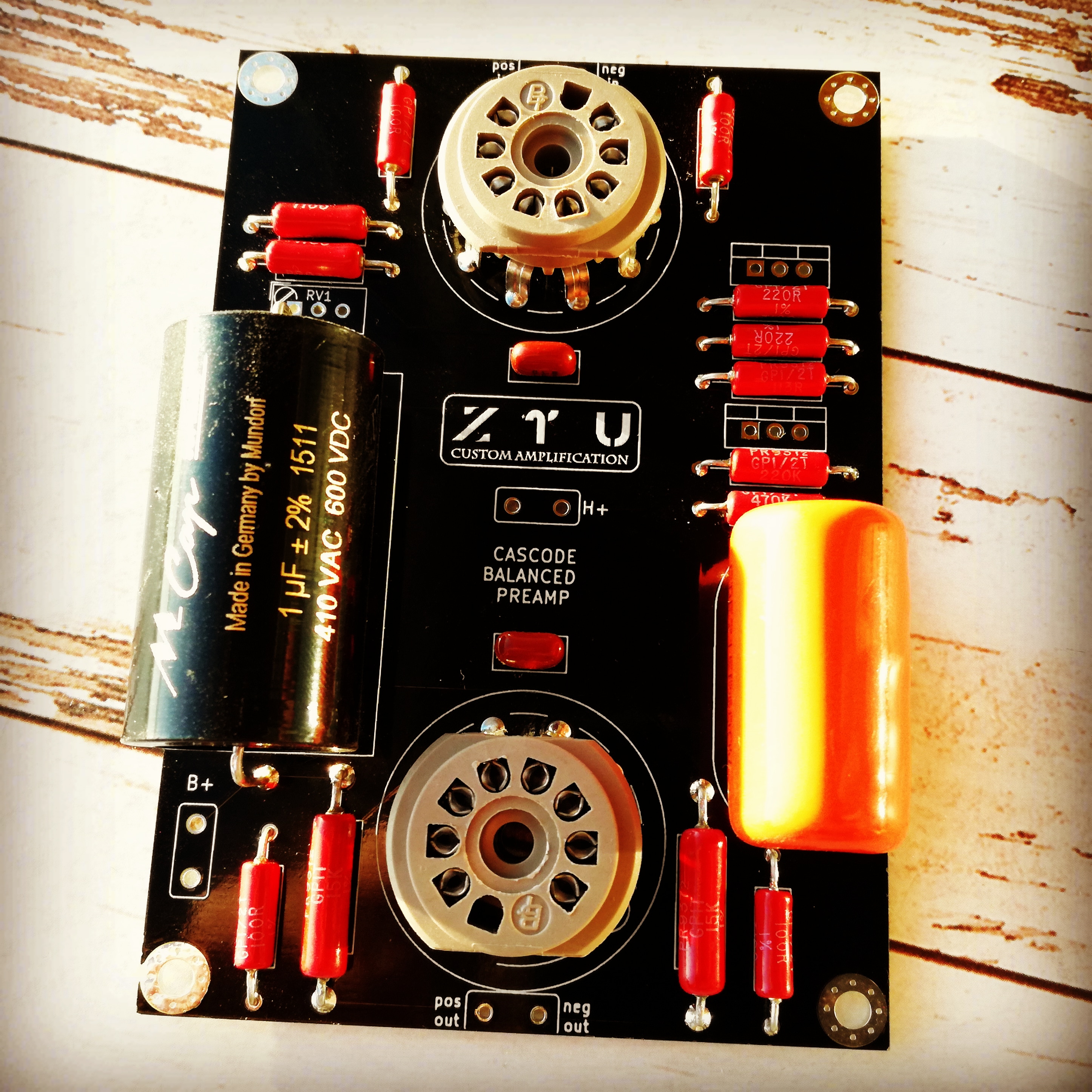 ПО центру платы разъем для накала. Возможно, его стоит сместить к краю, как и В+. Подумаю над этим.