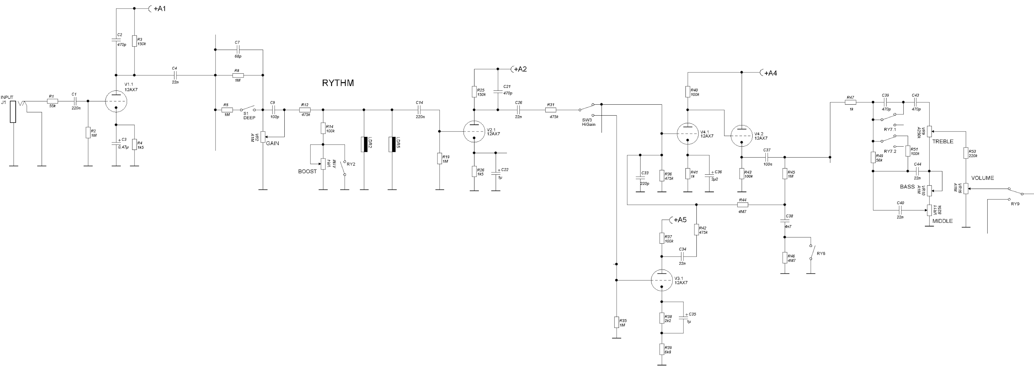 Одноканальник, за основу которого я решил взять ритм канал преампа VHT gp3. Редкий у нас зверь, но, мне посчастливилось в свое время, когда был по делам в Москве, поиграть на его старшем брате - полно форматном усилителе на kt 88 - VHT deliverance. Впечатлений я тогда получил просто массу, в первую очередь это было связано с тем, насколько гибкий в настройках этот аппарат - на нем рулится всё - от блюз-рока до зубодробильного метала.