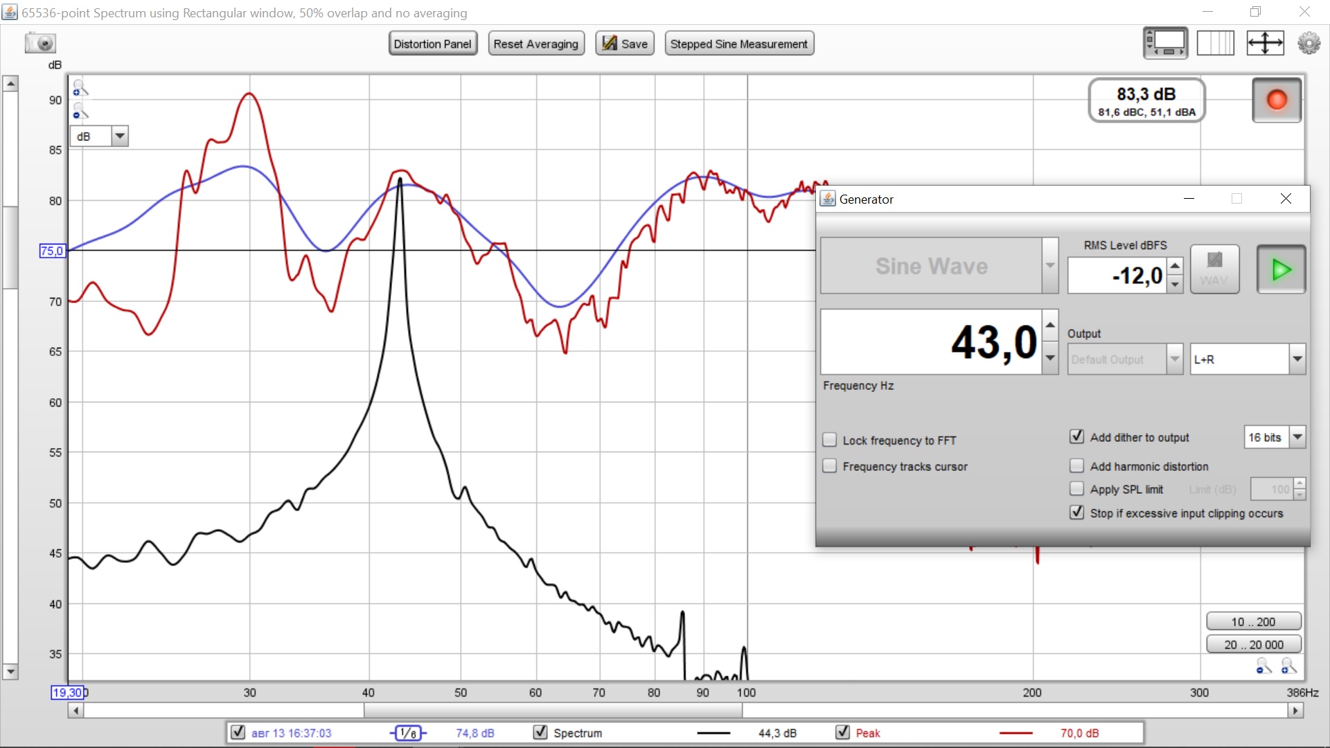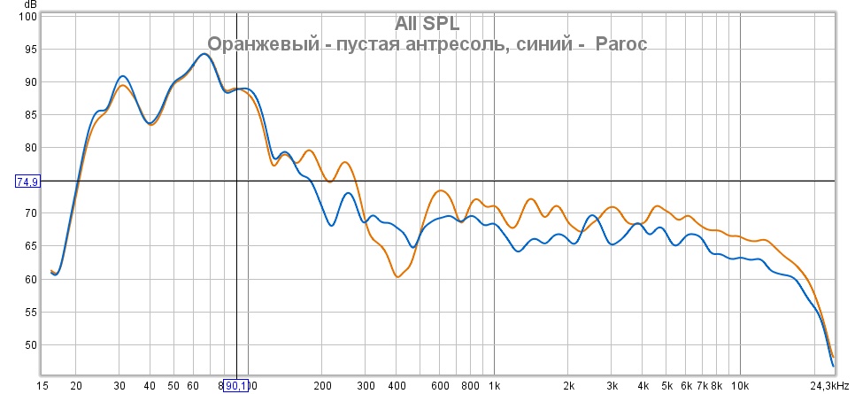 А вот с места слушателя, все не столь эффективно. И реальная частота, похоже получилась 80 Hz. Или что-то близко.