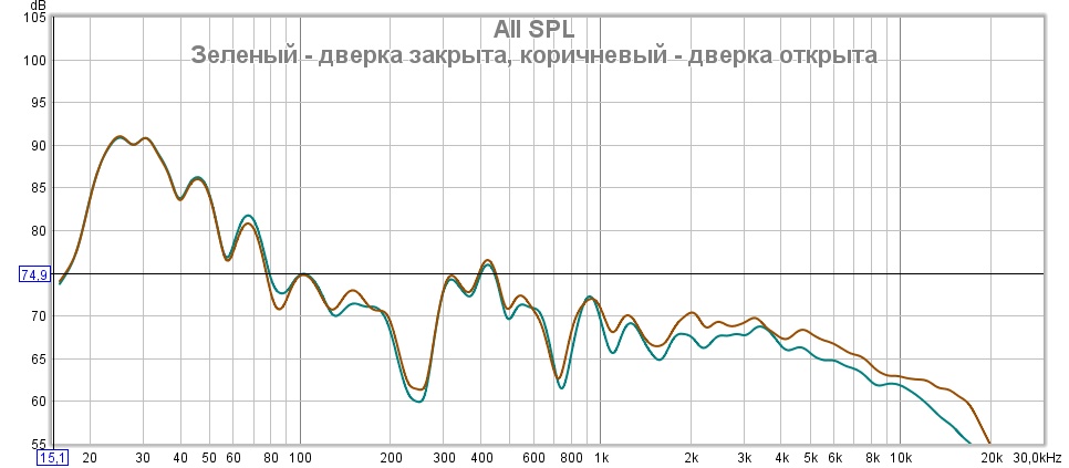 Это сравнение измерений с этим резонатором, "ошибочного" и повтороного: А это сравнение АЧХ до и после установки резонатора в шкафу: Т.е. резонатор в расчетной частоте ничего не меняет. НЕ РАБОТАЕТ конструкция.