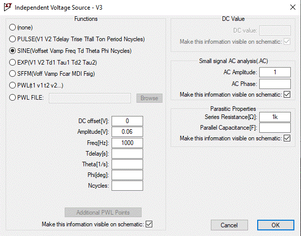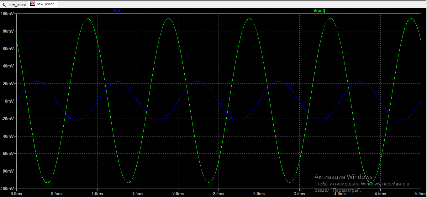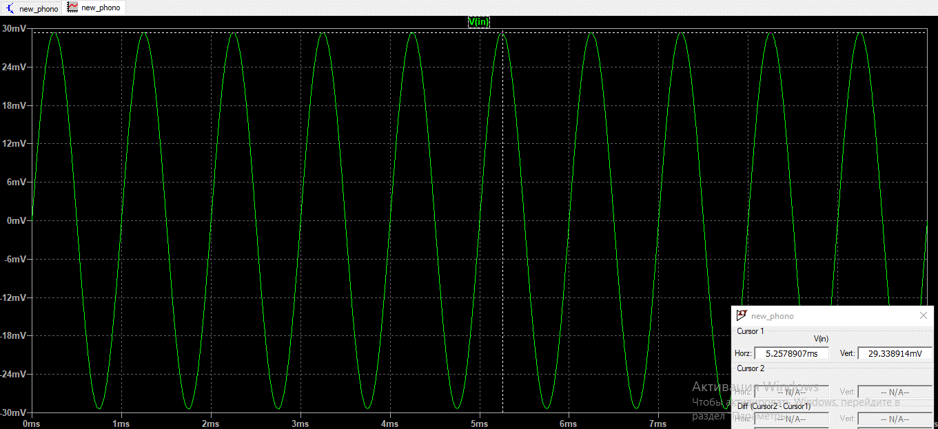 1. Подаём на вход не менее 30мВ RMS (V3). Снимаем сигнал с Out, Out-.