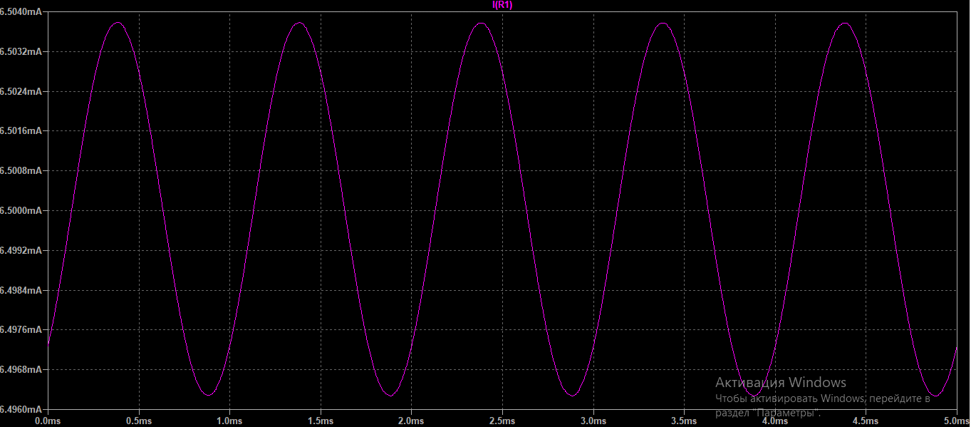 4. Проверяем ток через R1, R2 - форма не должна меняться, клиппирования не должно наступать (ток должен быть всегда больше 0 и запас должен оставаться >10% от номинала - >0,6мА).