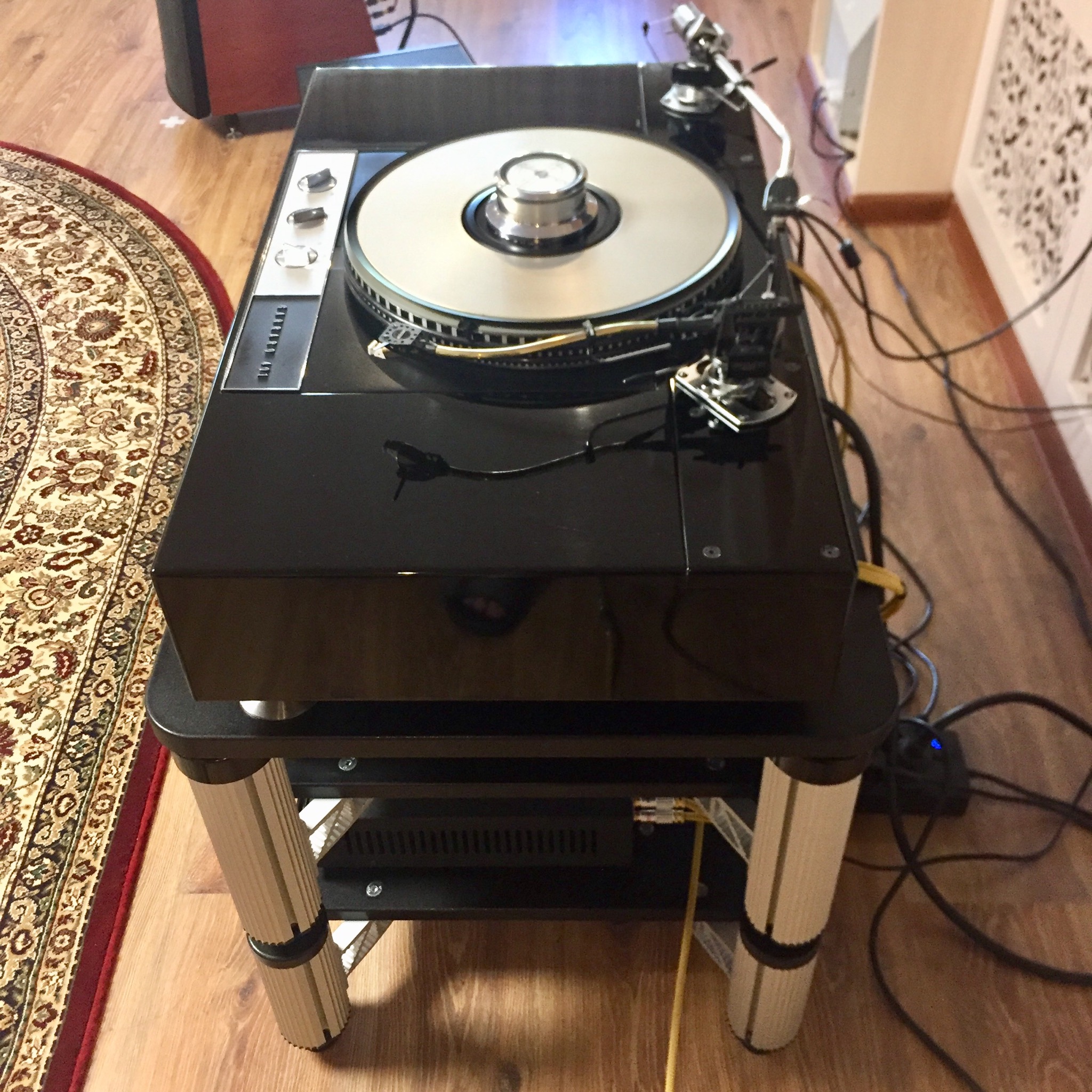 Однако, мой проигрыватель другой формы. Поэтому хотелось сделать некую стойку, на ножки которой он и встал бы шипами.