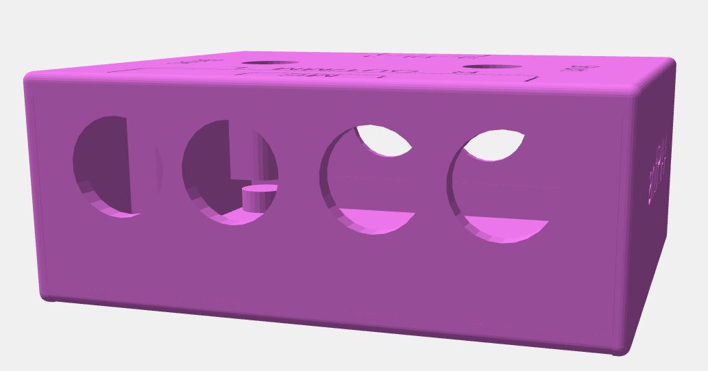 Стойки и подложки (снизу), куда ложится плата, выполнены от центров отверстий платы, придерживался диаметра 6 мм. + зазоры по краям платы 0,5. Стойки "примазаны" к стенкам корпуса. Из-за этого наверное и кажется что они большие.