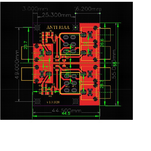 Конкретно надпись Short сейчас размещена не в верном месте: их должно быть две, как раз с другой стороны от отверстий для тумблеров. Если смотреть на второй рисунок (где видна надпись Short), то я бы написал antiRiaa на верхней и нижней гранях (нижняя линия надписи - к открытой стороне).