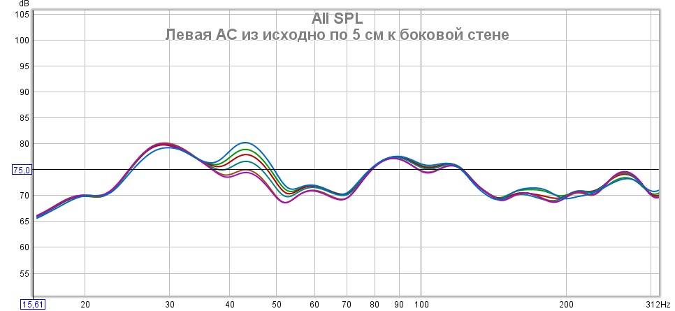 Ну, и что вижу: мой провал на "условной 70 Гц" ведет себя, как по написанному сценарию. И я вижу положительный момент в ослаблении этого провала при отодвигании от стены. Вероятно, это связано с тем, что частота SBIRэффекта совпала с частотой первой моды вертикали