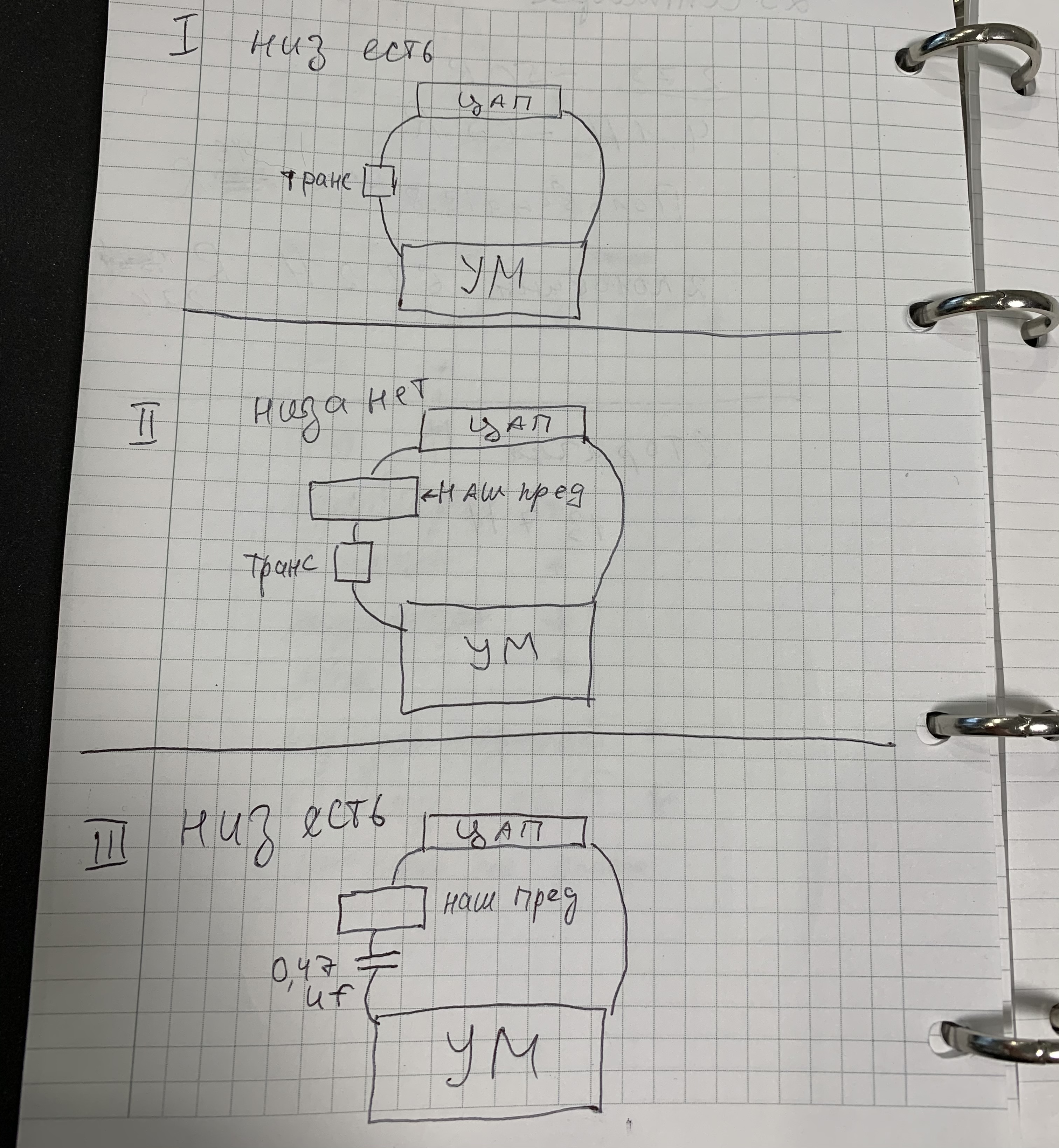 2 вариант: цап в наш пред (выход трансформаторный ) в мощник - низа нет