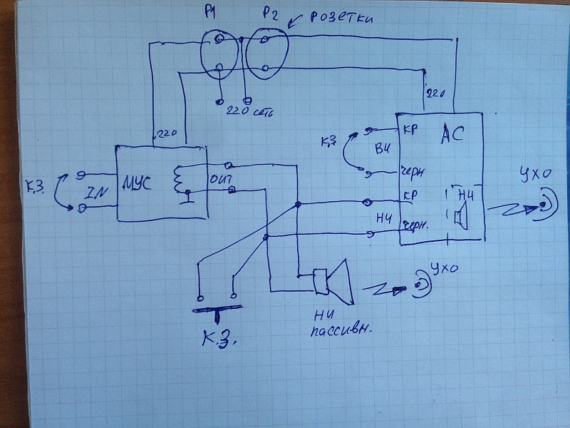 Поэтому предлагаю схему проверки. Её цель - для начала выяснить виновность не сети питания 220 с её землями и петлями, а самих блоков и сигнальных кабелей. Если это уже так проверялось и вы уверены в бесшумности вашего моноблока и активной акустики с их разъемами и сигнальными кабелями - просто забейте на этот пост.
