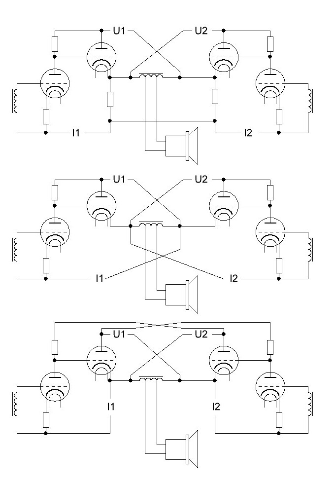 Вот структуры схем из вашего 106 поста меня смущают. Не могу сходу на реальных лампах расставить рабочие потенциалы, токи и режимы на них.
