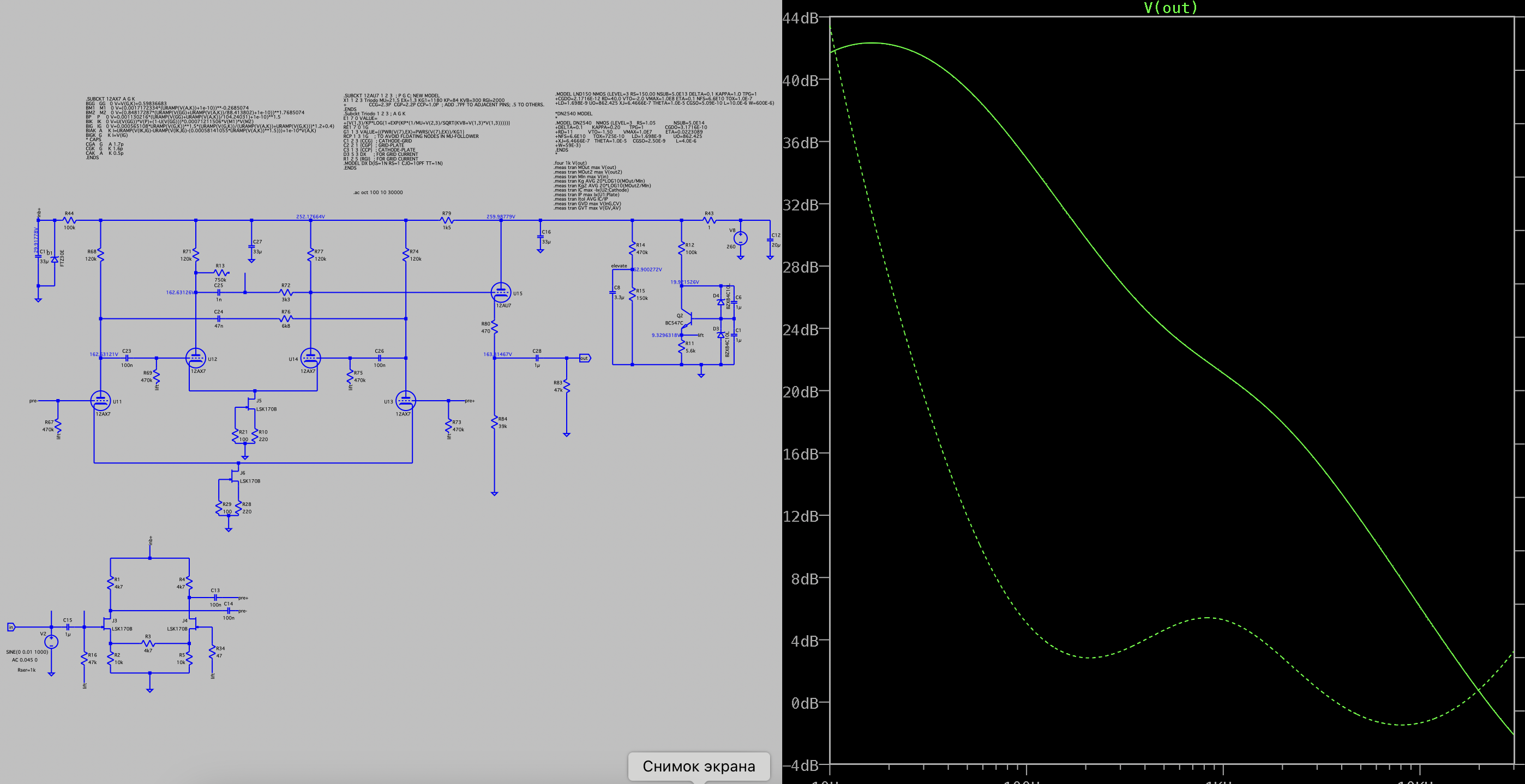 Занимаясь балансным корректором, мы изначально моделировали так Результат оказался супер ок. Выходной резистор r83 подключен к земле, и RIAA оказалась такой как надо.