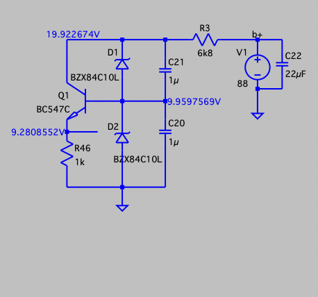 Мы знаем что ток питания корректора пойдет через R46. Я задался током через Q1 в 10 мА (для bc 547 максимальный ток 100мА) Я задался 10мА