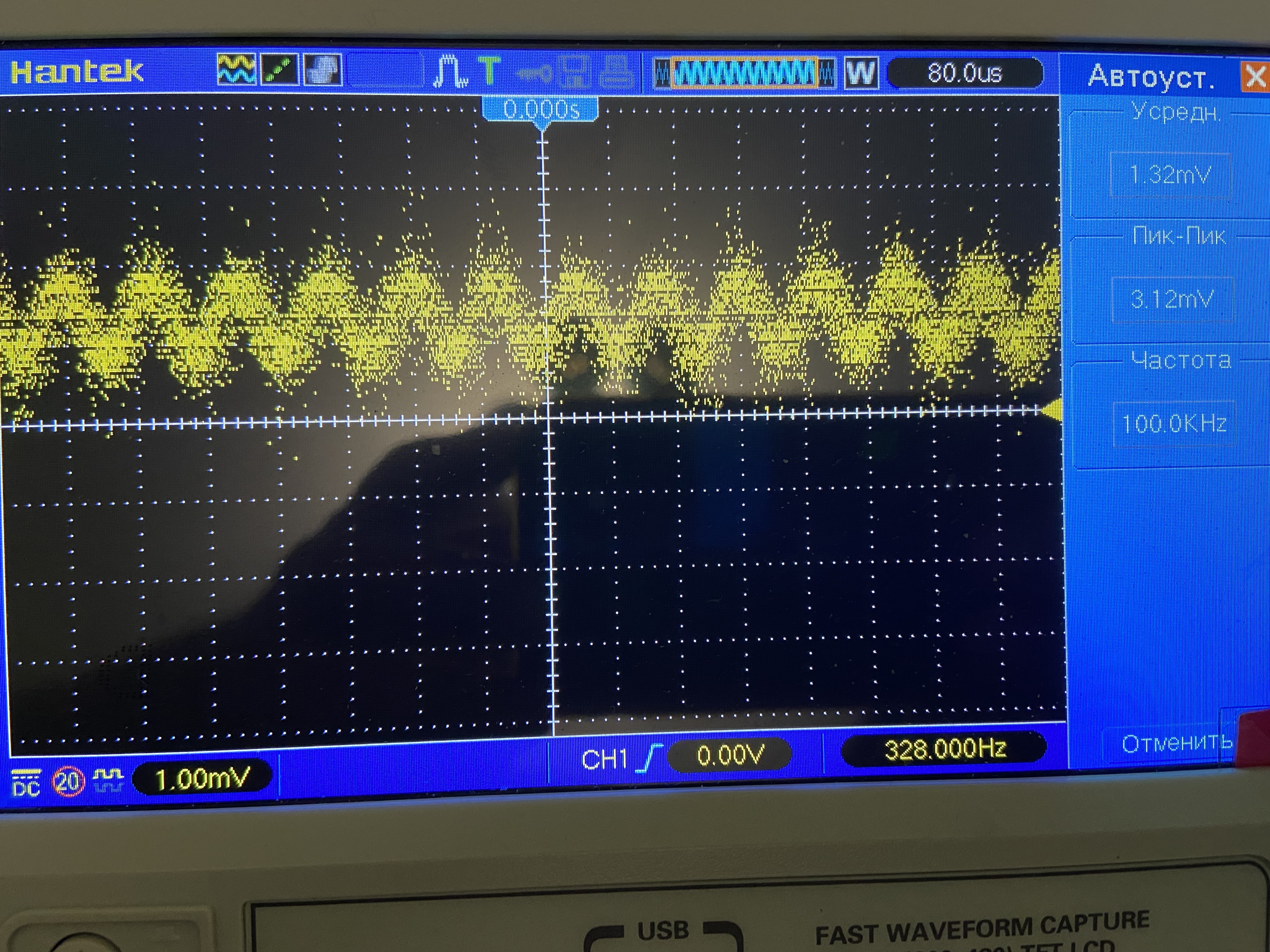 Меня фатальная засада вымучила и я уже по инерции сдался! Пере паивал провода с генераторных щупов, менял RCA разъемы, чего только не делал кроме самих измерений. Мелькнула более менее приличная картинка синуса на полностью выкрученном в ноль по усилению генераторе и вот хотел вернуть это мимолетное « счастье», а оно поманило ( сигнал около искомого 1 мВ, что бы напрямую по пробовать), но более не по радовало. Все время идёт размытый синус с кучей помех и частота на осциллографе под 500 кГц- наводку ловлю. 1 мВ так и не смог получить на выходе генератора. Прибавил усиление. Чистый синус. Увидел скачек на выходе по частоте, смотал провода расстроенный и сказал себе- не мой день!