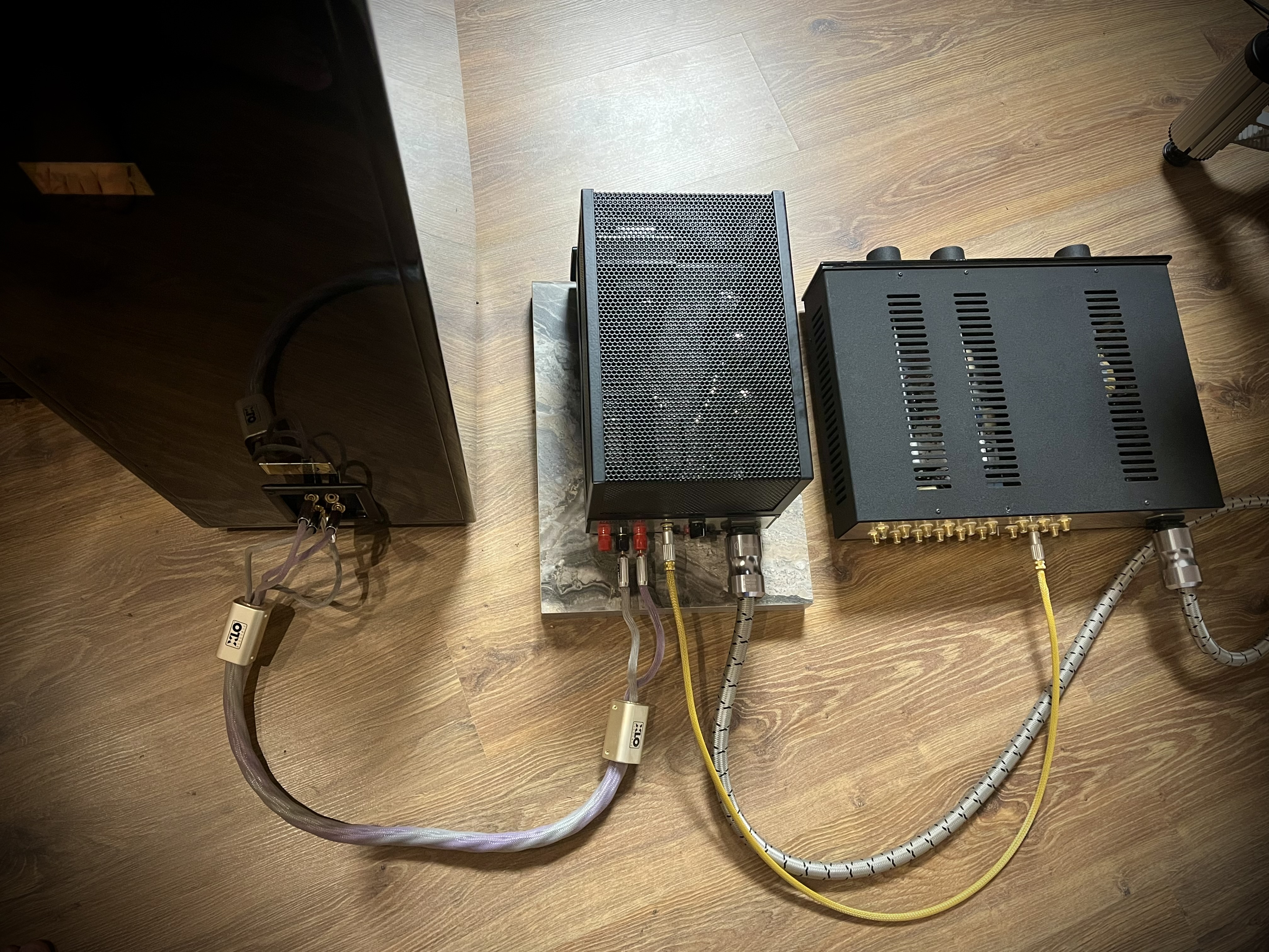 Систему пока собрать не могу - кабель, который фонил с моноблоком, я забраковал - убрал в коробку. А других нет такой длины. Нужно спаять, что-то временное из микрофонного кабеля.