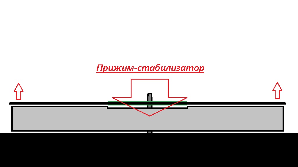 Вес прижима-стабилизатора будет прогибать центр пластинки, поднимая ее края. Края не просто поднимутся, а "зафолдят" (образуют волны).
