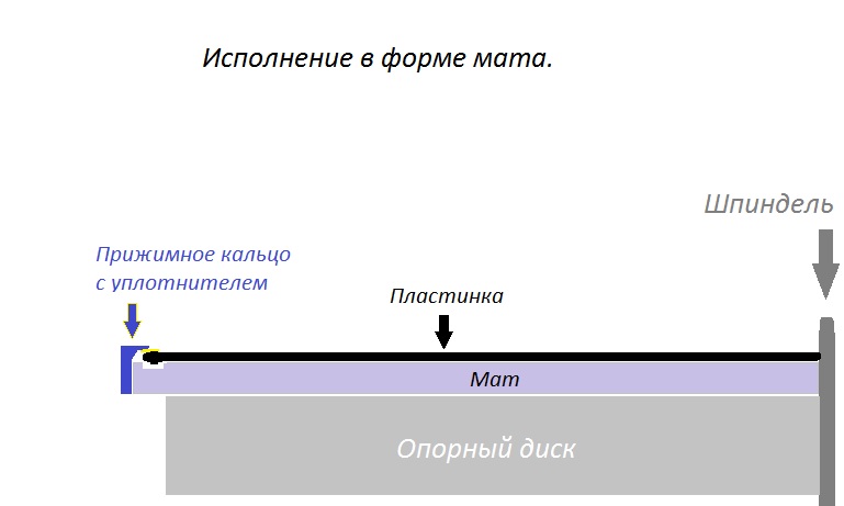 Алаев Ян писал(а):Мне все понятно, но не нравится идея с прилеганием мягкого материала. Я считаю, что диск должен опираться на пластинку.