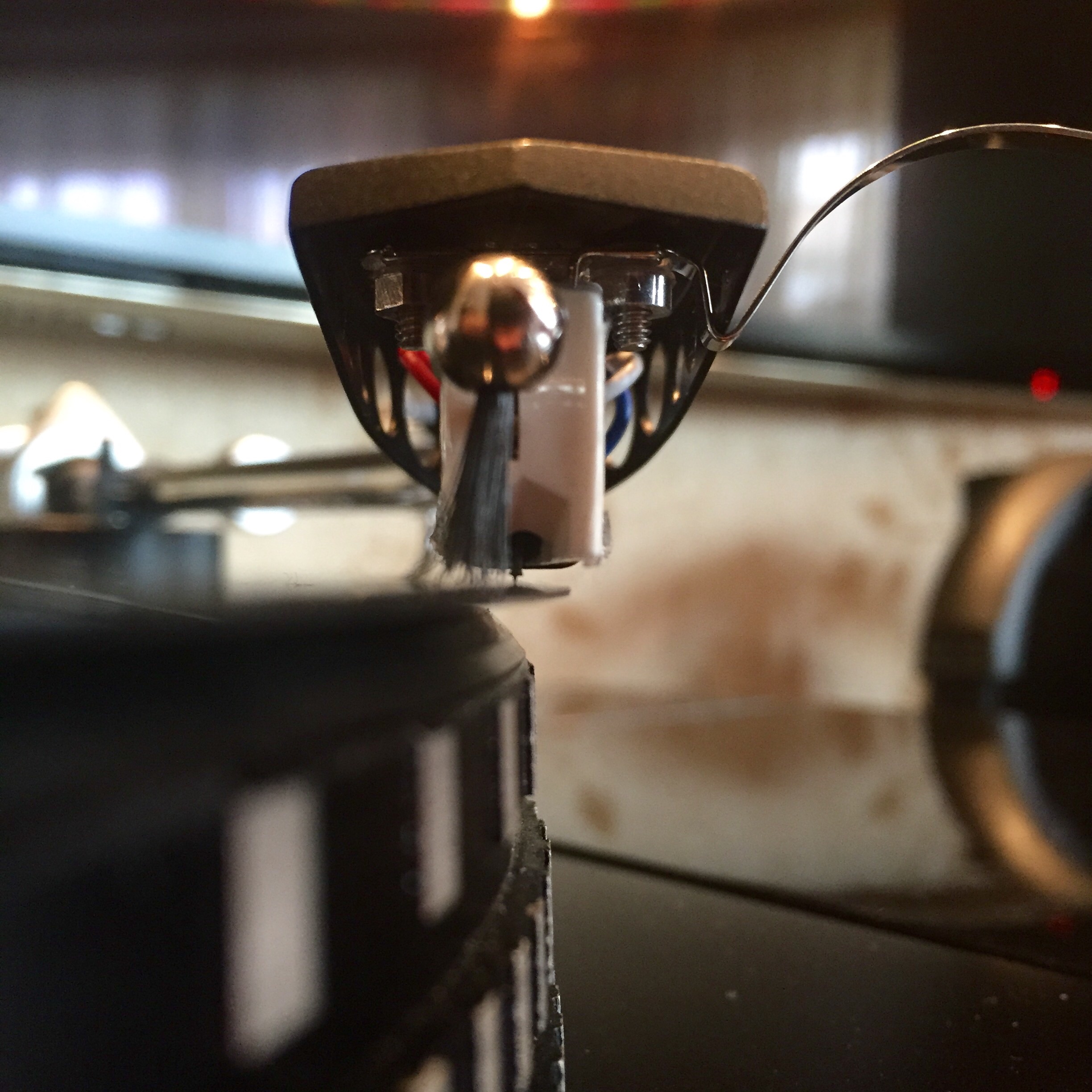 Вернусь к этому, лишь если будет возможность воотчию убедиться в реальности подобного. Или может быть кто-нибудь когданибудь выложит фото/видео демонстрирующие именно момент захвата края пластинки прижимным кольцом и макро съемку захода иглы на дорожку.
