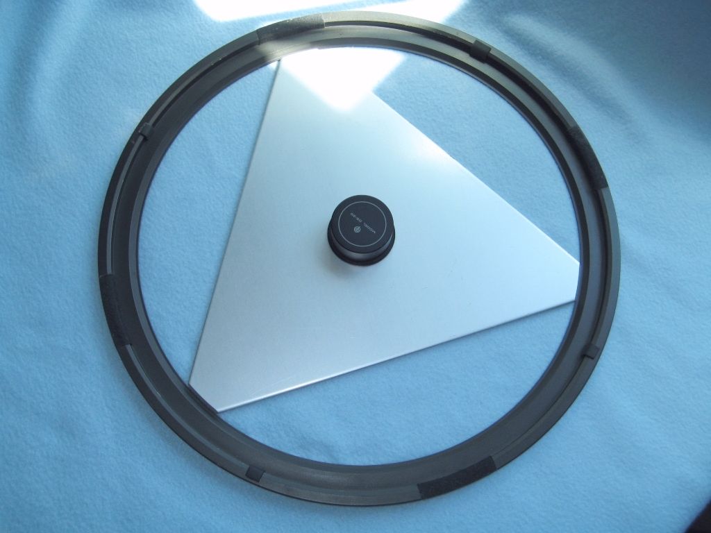 Кольцо центруется по внешнему краю опорного диска. Т.е. это как-бы его съемная часть. Прилегание, в зоне контакта, хорошо бы обеспечить прокладкой из мягкого материала. Конечно точить диск дело не шуточное. Но, ведь можно сделать аксессуар в виде мата с прижимным кольцом. Тогда такой аксессуар может быть универсальным. Важно лишь, чтобы высота шпинделя на проигрывателе позволила его установить.