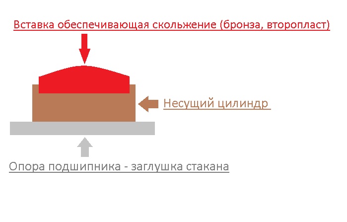 Опорный подшипник должен быть сменным элементом. И заказать их нужно несколько. Все-таки я думаю, что это должно быть составное тело. Потому что нужно объединить разные свойства материалов - опора должна быть скользкой и мягче вала, несущий цилиндр должен быть жестким (не вносить дополнительную гибкость). К тому же составное тело, как я отмечал выше, будет дополнительно гасить вибрации, передающиеся от корпуса на шпиндель (и обратно).