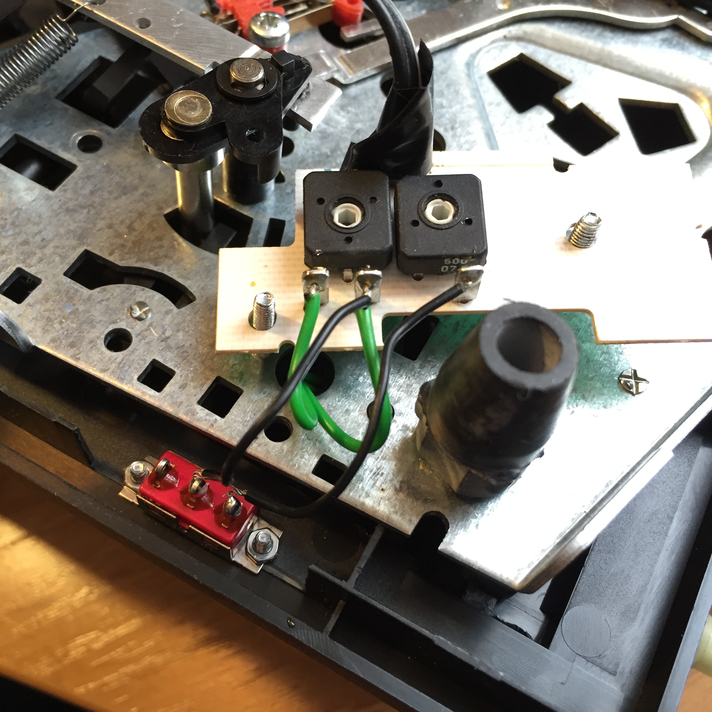 Увы, их пришлось снять! Именно из-за того, что я поднял тонарм, он потерял возможность управляться автоматом. Вот такая маленькая "штучка" теперь упирается в панель.