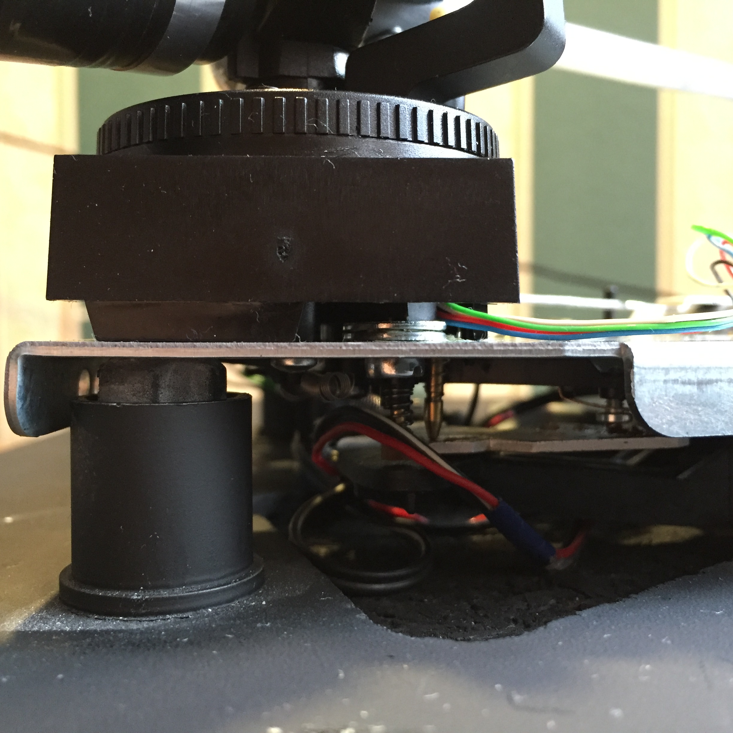 Я сейчас отдал диск привода (пластиковый) на коррекцию. Если все получится так, как я себе это представляю, то поворотный диск опустится. В принципе, опускание поворотного диска можно применить, как альтернативу поднимания тонарма. Но, я предлагаю рассмотреть это в совокупности. Пока мой диск на доработке, я посмотрю, что там с установкой тонарма (обещаю отчитаться здесь). А когда получу диск, можно будет оценить возможность его опускания, но это не более 2-3 мм. и будет связано с опусканием и мотора.