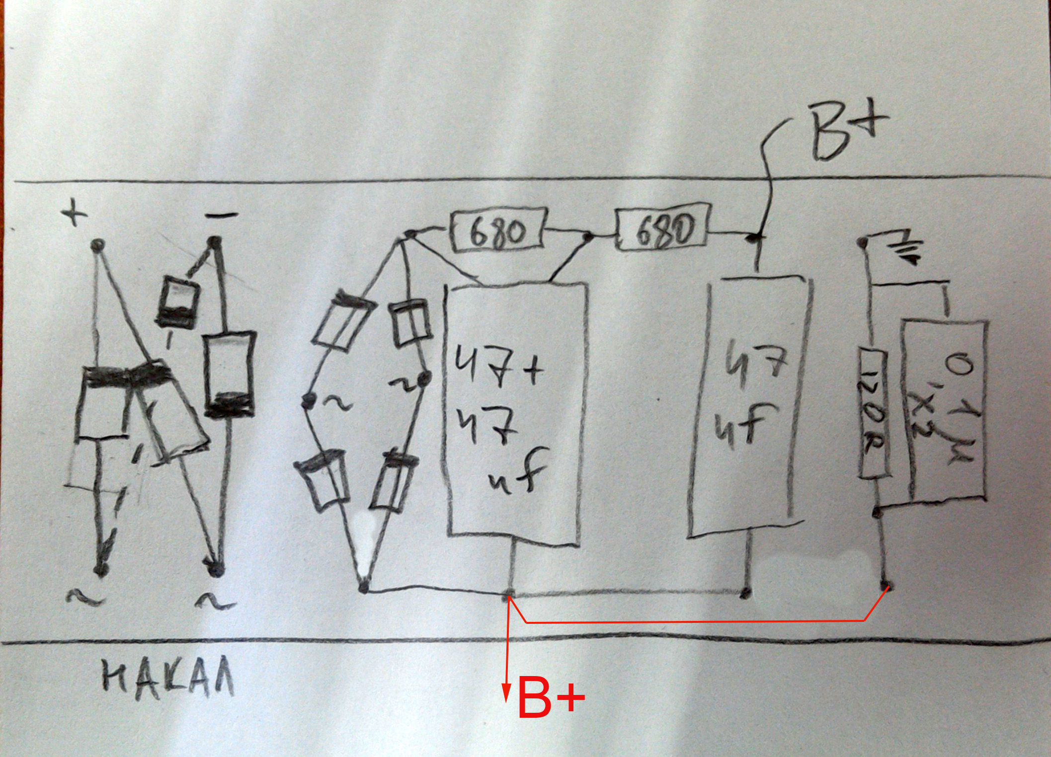 Нормально. Только детальки B+ поплотнее и можно было бы минусовую шину превратить в звезду на туррете, к которому соединён Mundorf (как на рисунке, только красный B+ - это минус анодного, неправильно написал). Но не принципиально.